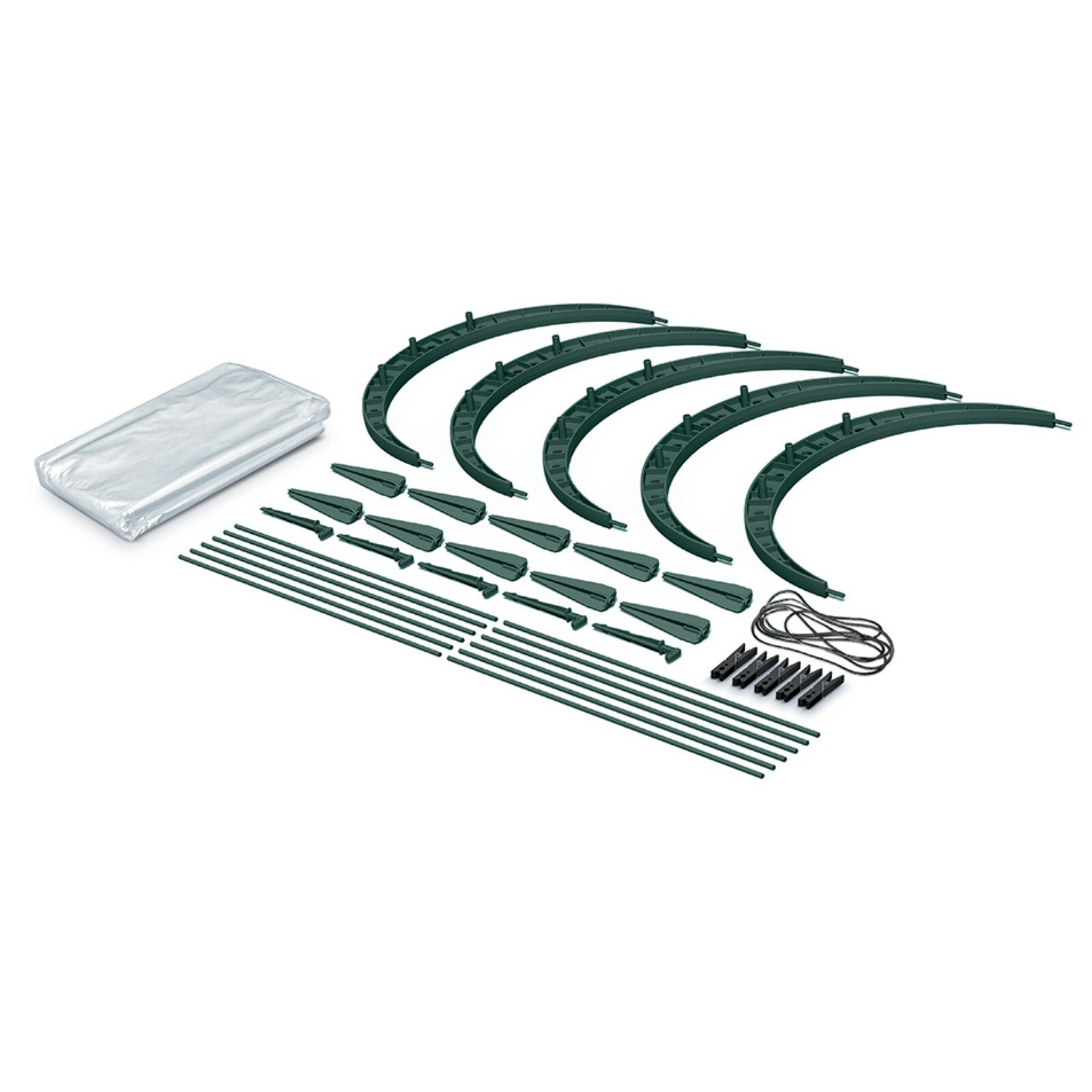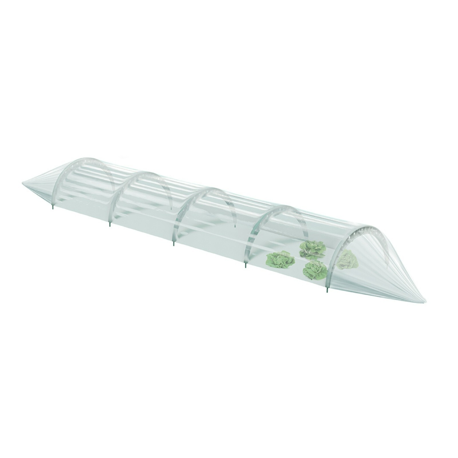 The weather-resistant foil cover helps retain warmth while providing a barrier against wind and light rain. Aluminium eyelets make it easier to secure the cover firmly, and the rounded tunnel shape helps it stay stable and encourages rain to run off.