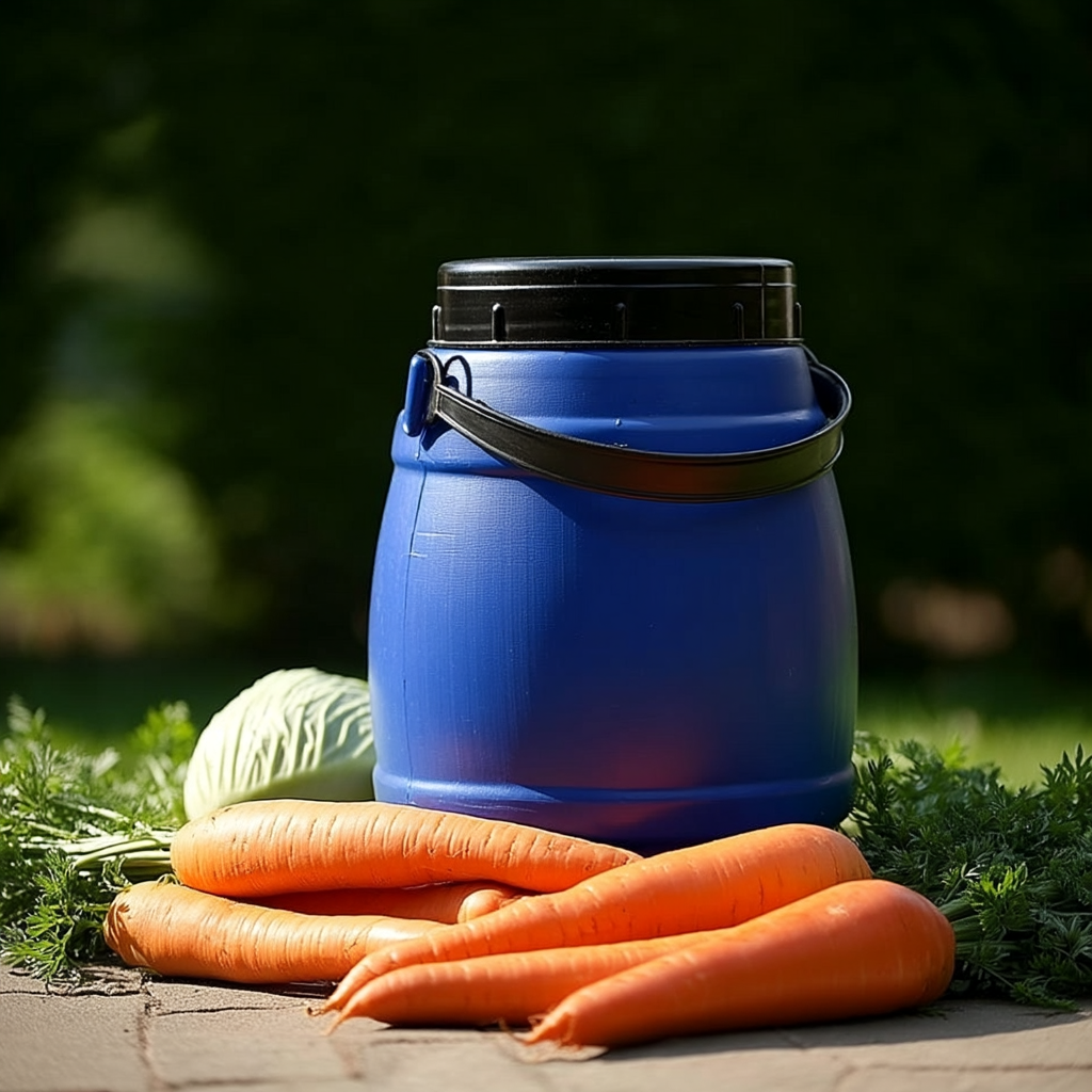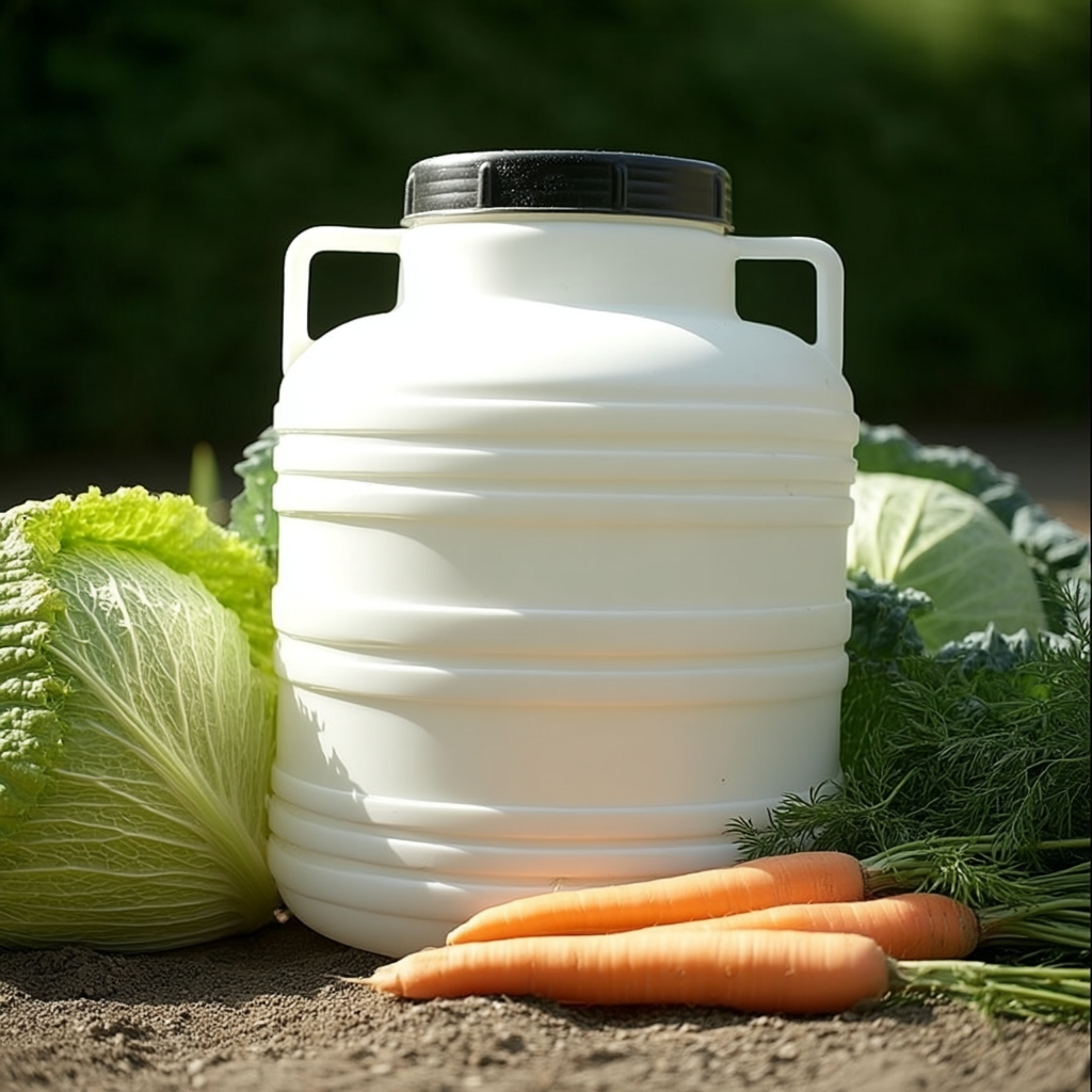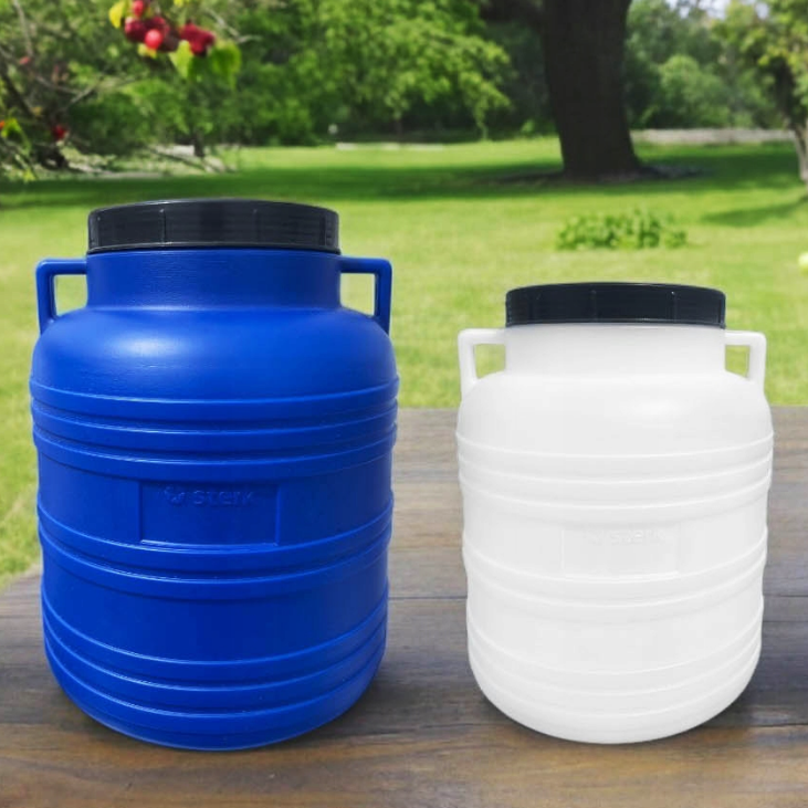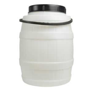 Food-grade plastic barrels for hygienic storage, fermenting and pickling at home. Each barrel has a wide opening and screw-on lid for easy filling and cleaning. Choose the size and style that suits your batch or storage needs.