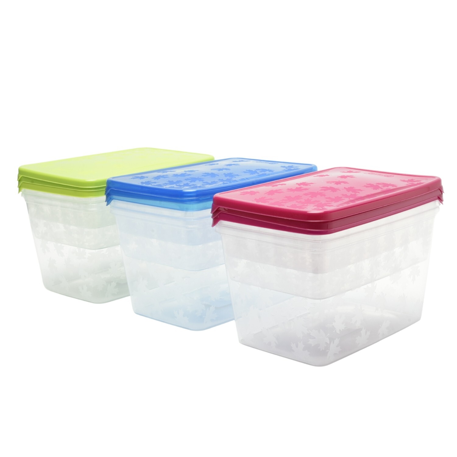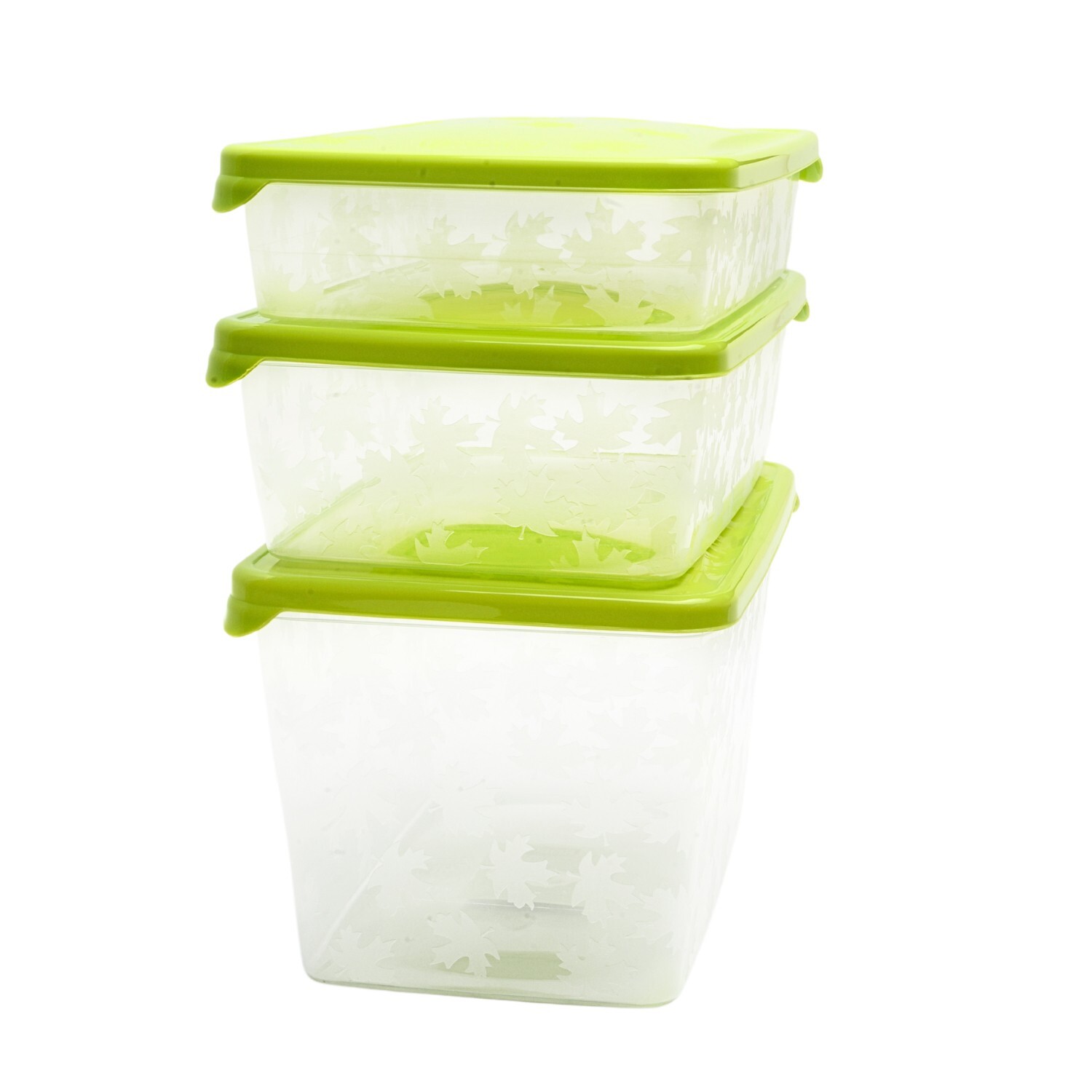 Keep leftovers and meal prep fresh with this set of three BPA-free food storage boxes with secure lids. The leaf-textured design looks smart in any kitchen, and the stackable shape helps save cupboard and fridge space.