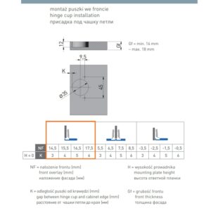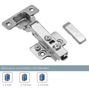 Made from steel with a nickel-plated finish, the hinge is designed for durability and consistent operation. The clip-on mounting style helps speed up fitting and removal, while the three-way adjustment lets you fine-tune door position for neat, even gaps.