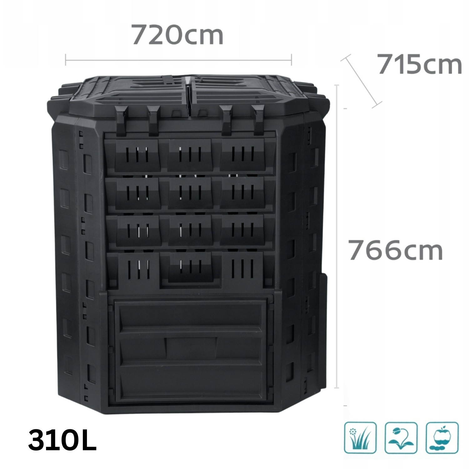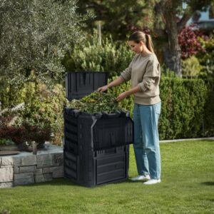 Turn kitchen and garden waste into rich compost with this 310L compost bin. The ventilated design supports faster, low-odour breakdown, while the lockable lid helps keep the contents secure outdoors. Bottom access doors make it easy to remove finished compost.