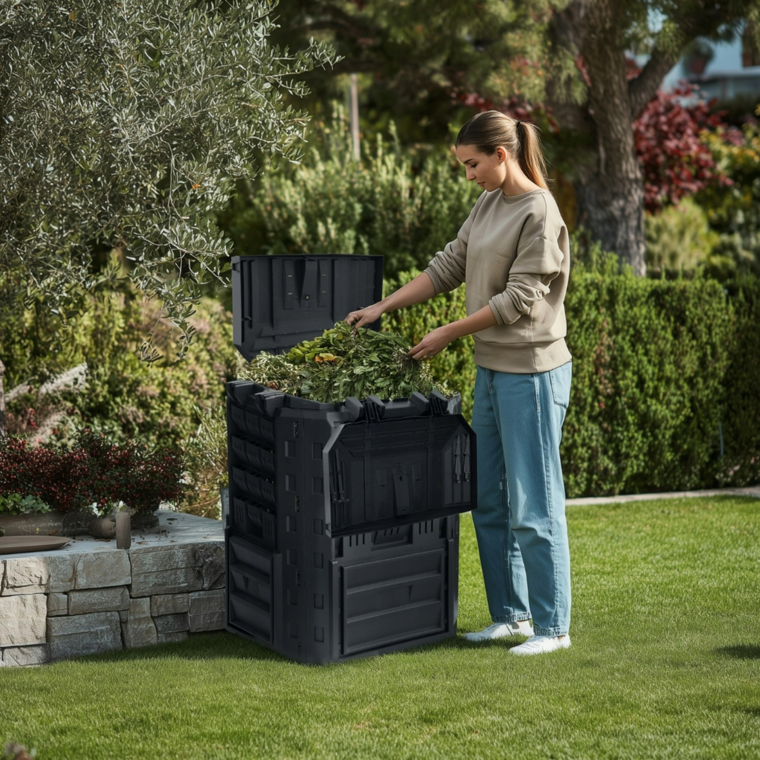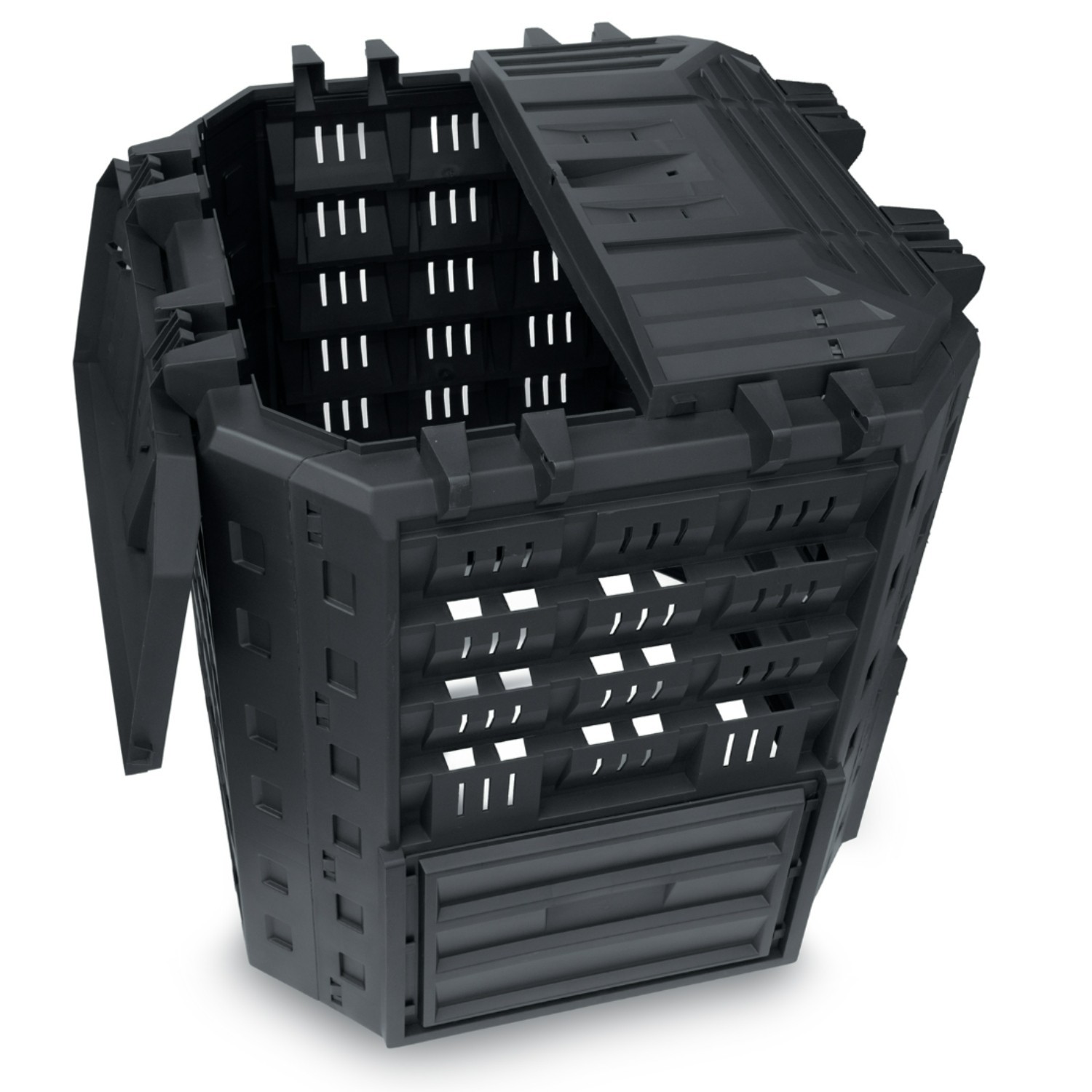 When your compost is ready, the twin lower sliding access doors allow tidy removal from the base without disturbing the material above. This helps you harvest finished compost while keeping the rest of the contents working.