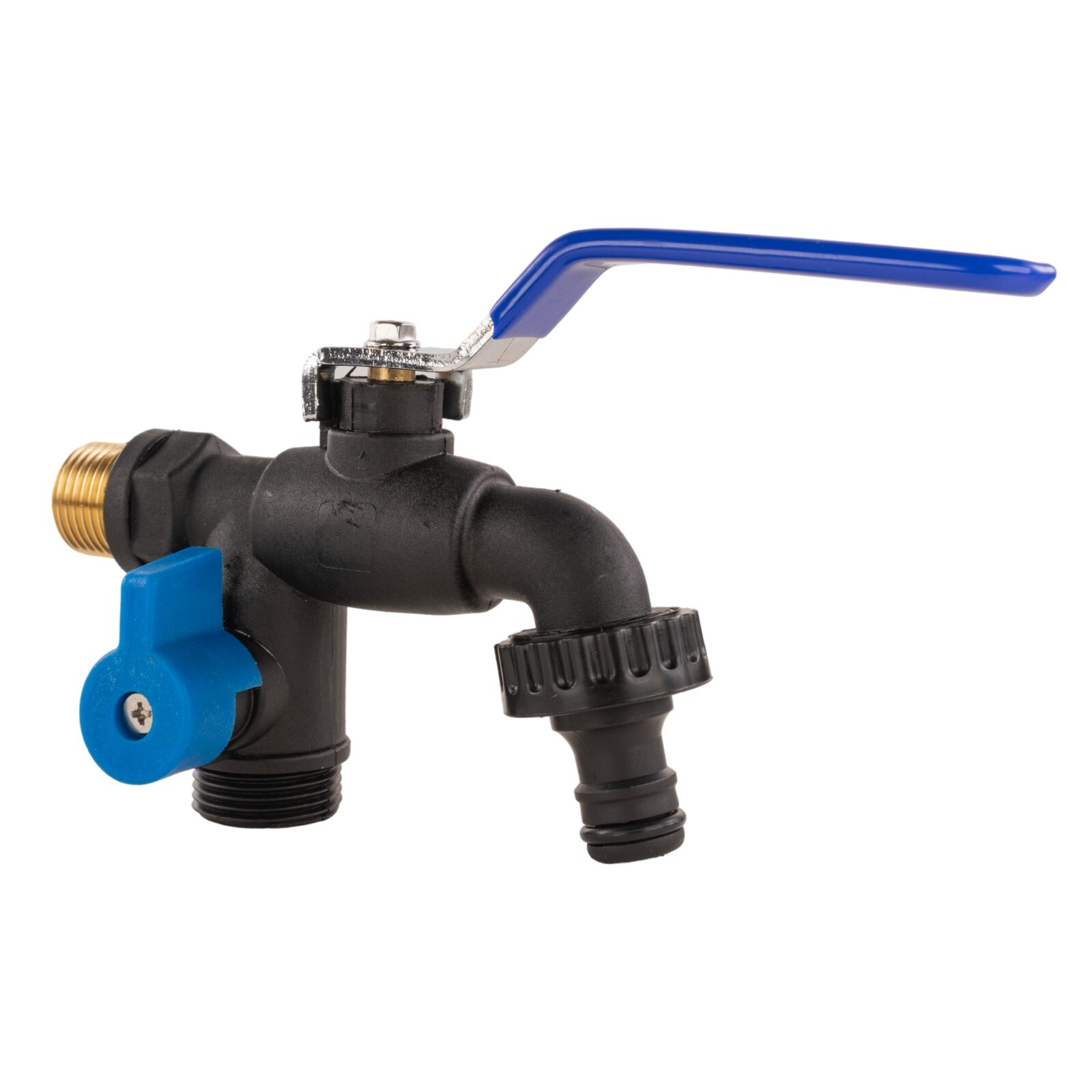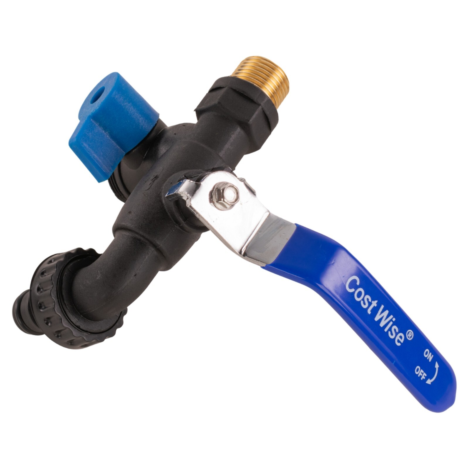 Made with a durable PVC body and a brass inlet thread, it’s built for regular outdoor use while keeping installation secure and straightforward. The easy-turn lever handle provides smooth on/off control, helping you manage water flow without strain.