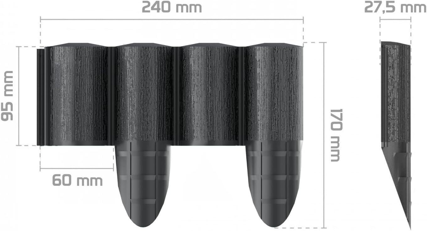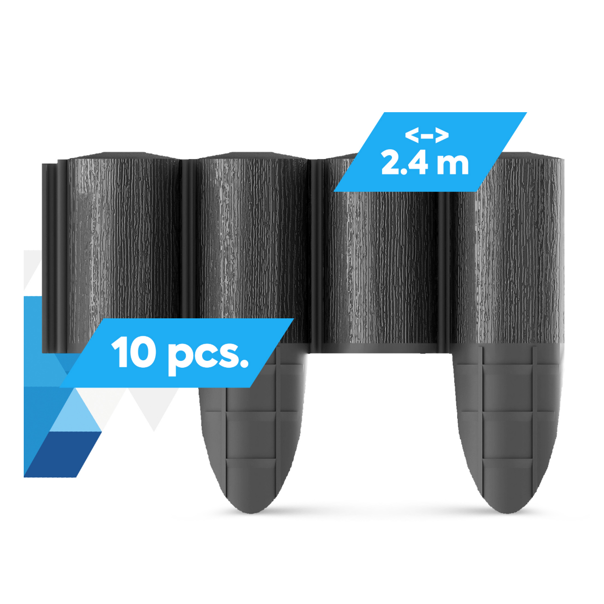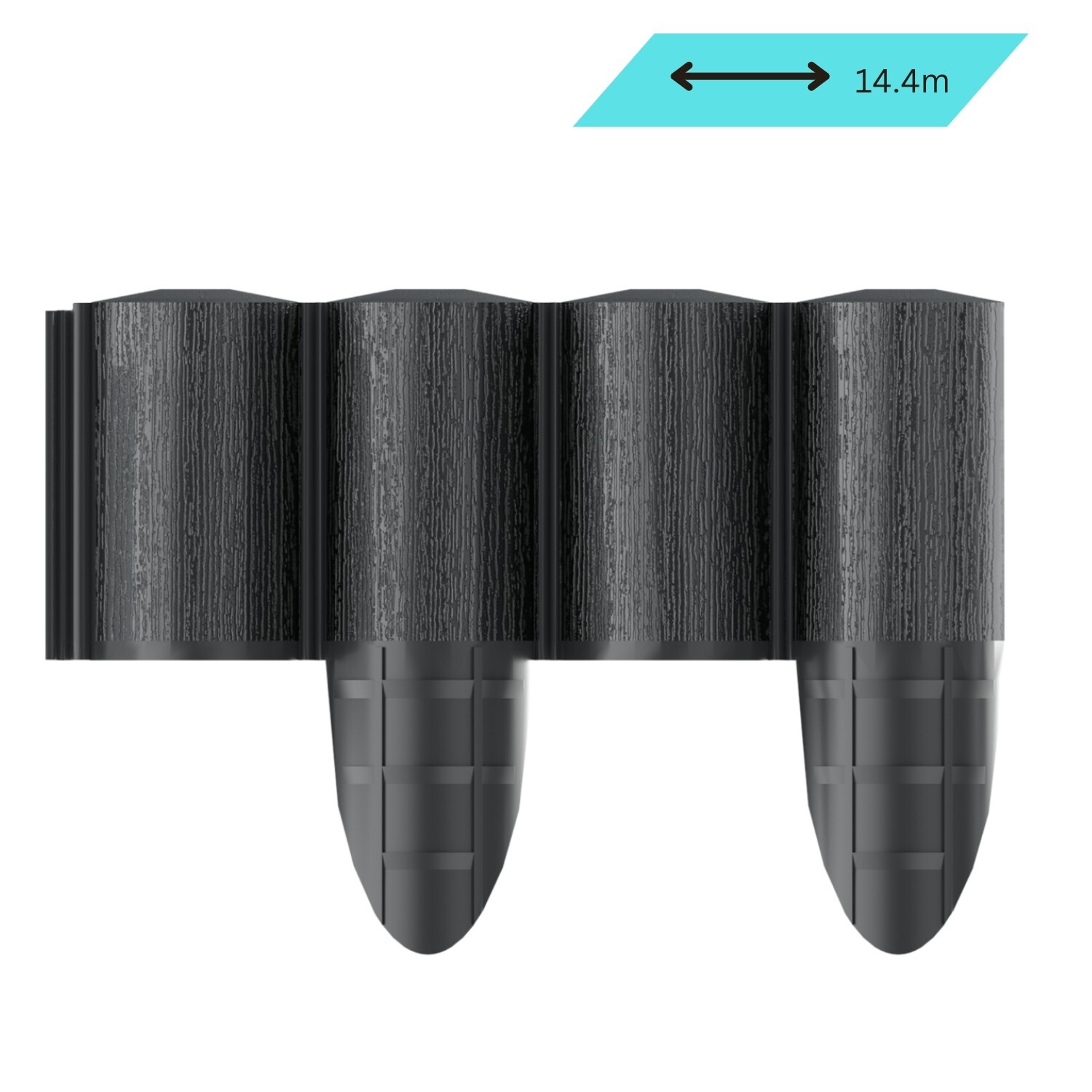 Made from durable polypropylene, each section links together to create a continuous border with a smart wood-grain style surface in anthracite. The pin-style connection is designed to reduce cracking during installation, and the material is made to cope with outdoor use in changing weather.