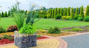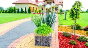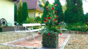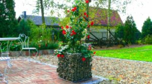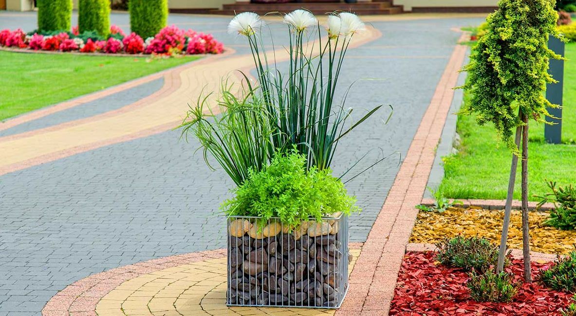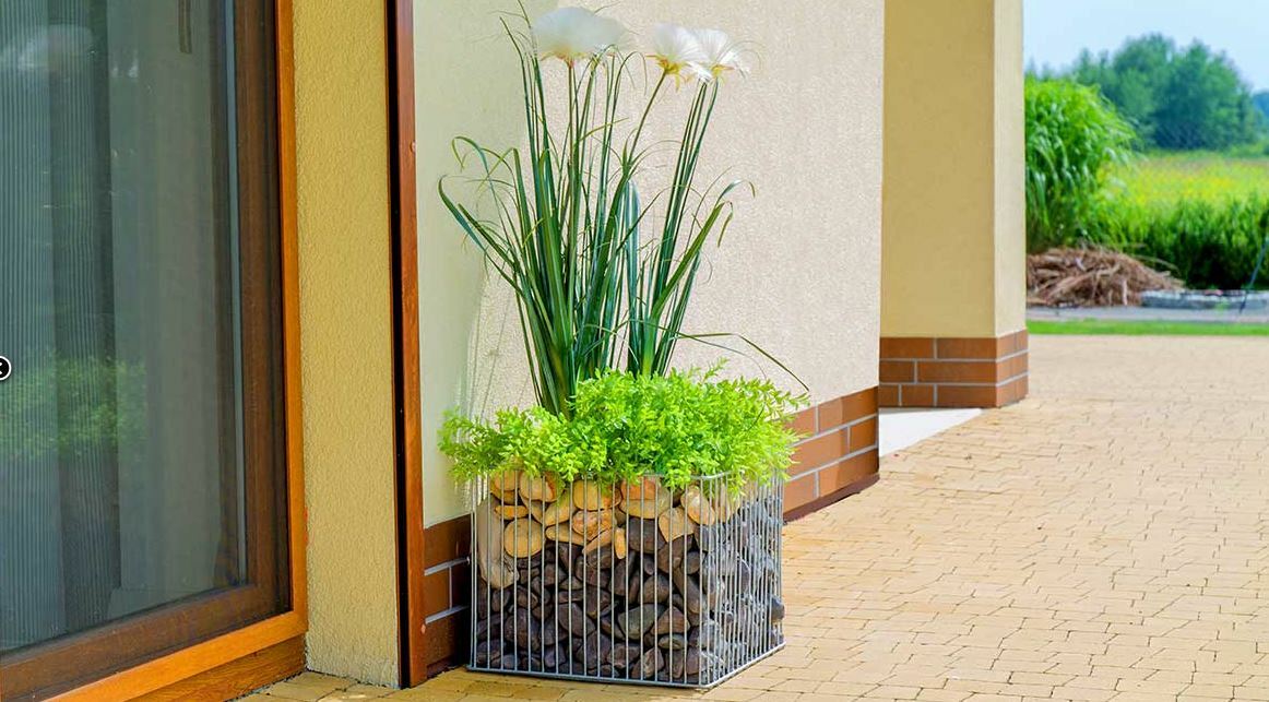 Fill the gabion with stones for a classic look, or choose alternative materials such as wood pieces, glass or cones to match your space. Once filled, place your plant pot inside to create a neat, stable display that’s easy to refresh seasonally.