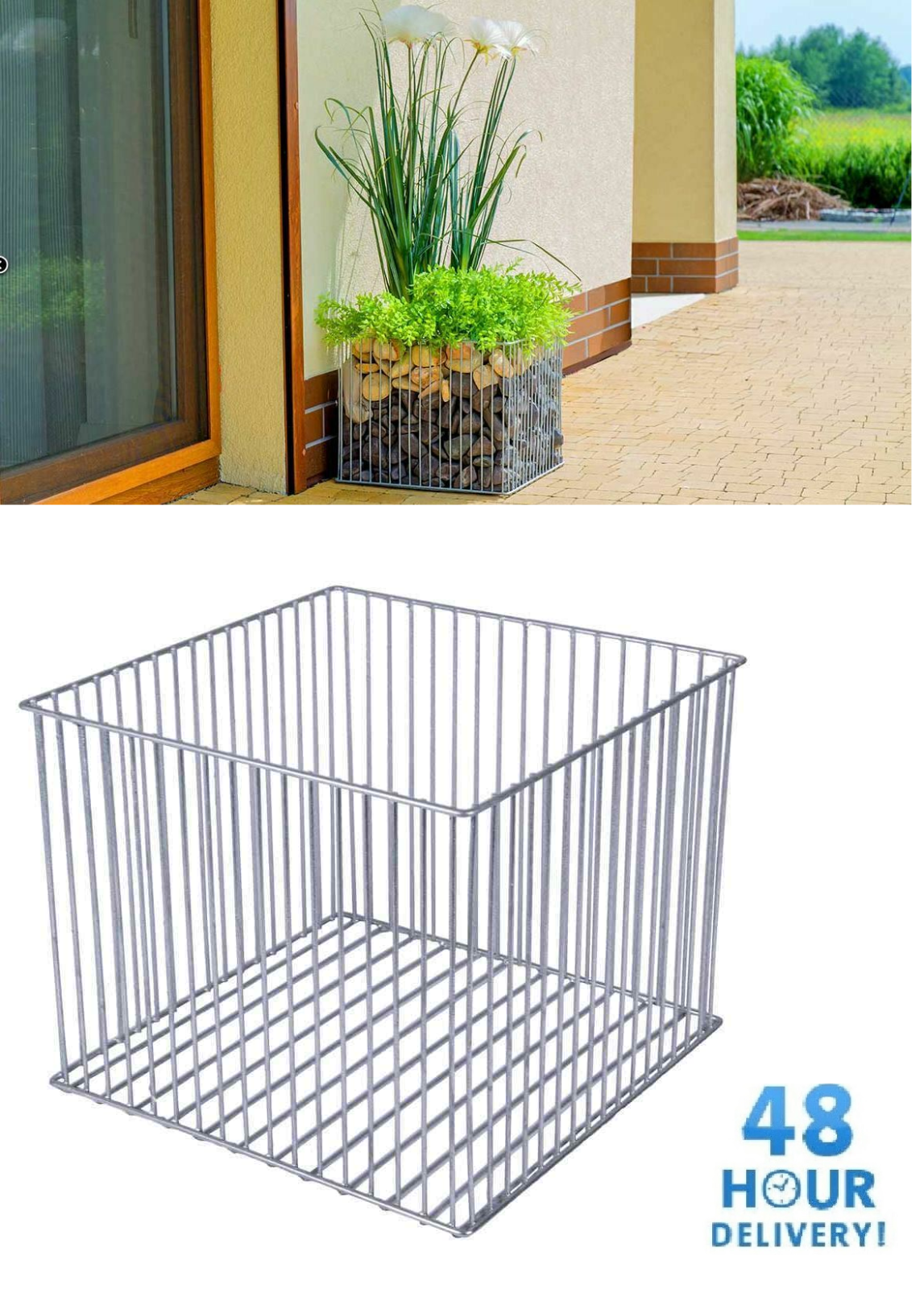 Create a modern feature planter with this square gabion basket, designed to be filled with stones or other decorative media. Made from galvanised steel for durable, weather-resistant outdoor use. Stones are not included.