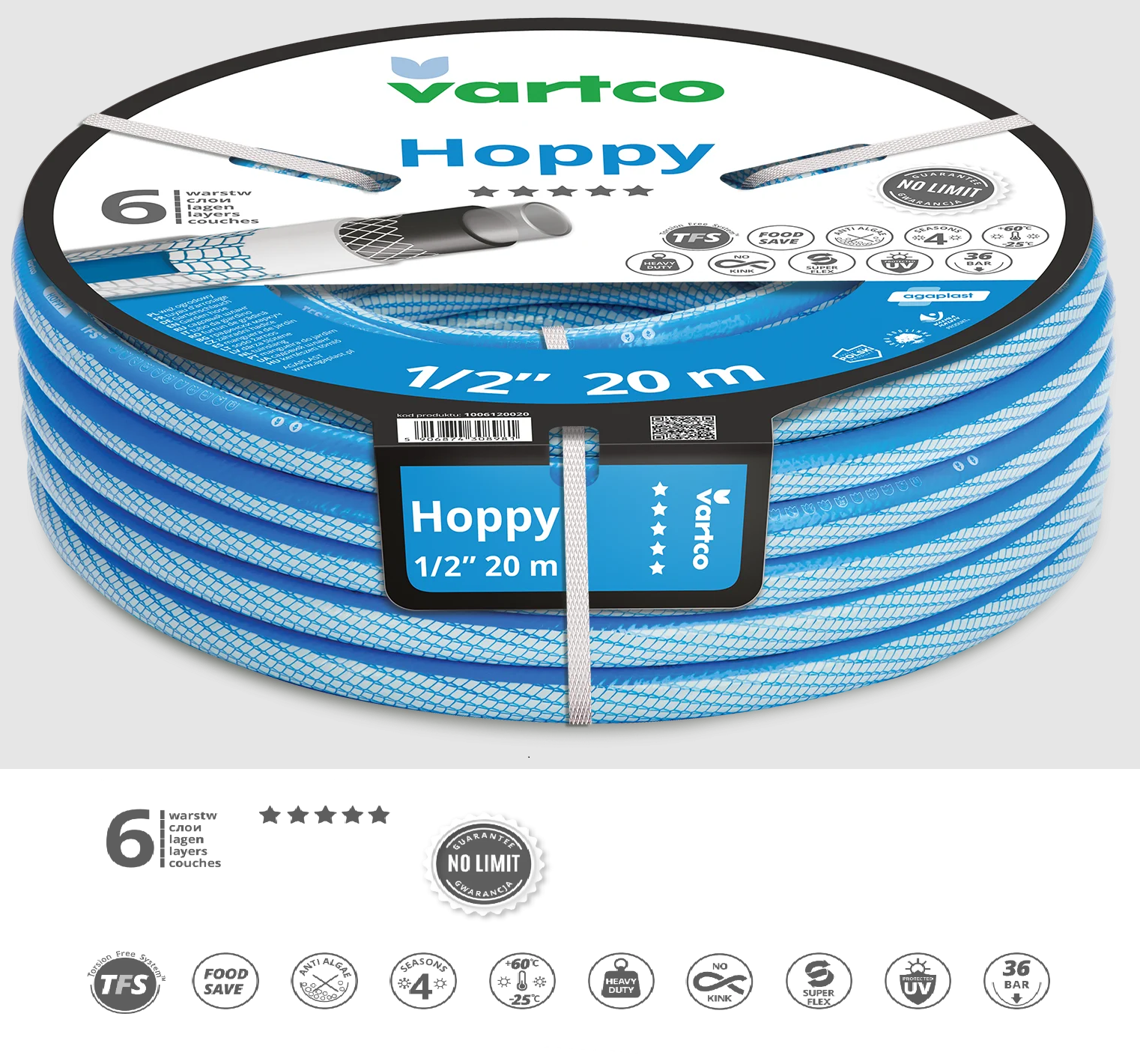 A reinforced 6-layer garden hose designed for reliable watering with fewer kinks and tangles. Flexible in use but tough enough for everyday outdoor jobs, with UV and frost resistance for year-round performance.