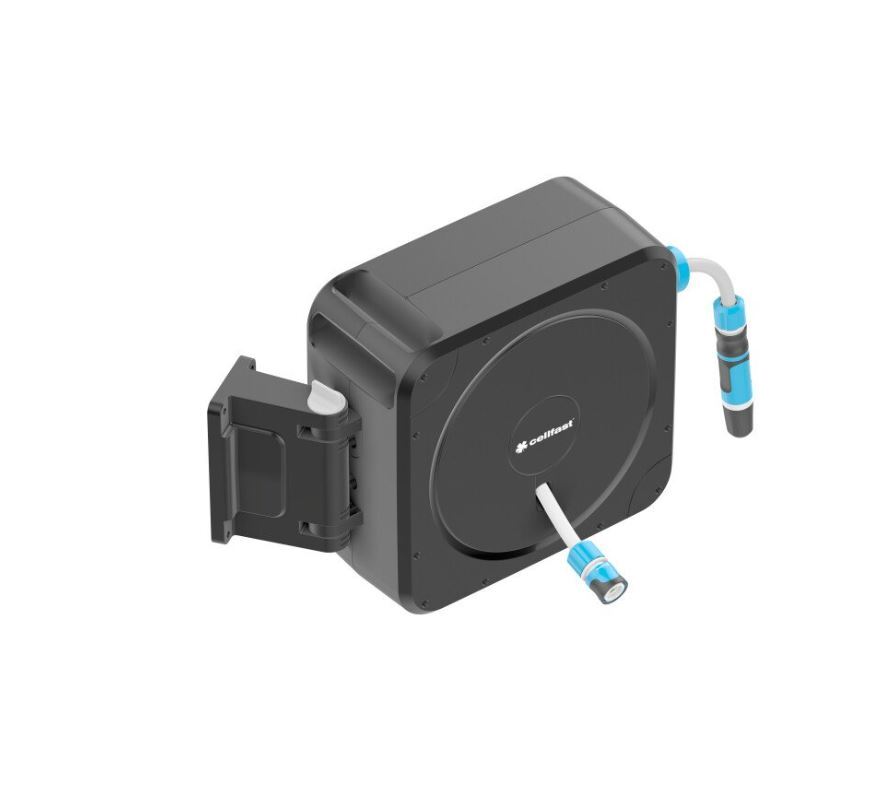 The heavy-duty wall bracket allows the reel to be mounted securely and swivel through 180°, giving you improved coverage without constantly repositioning the unit. Ergonomic side handles also make it easier to carry the reel when you want to use it as a portable set.