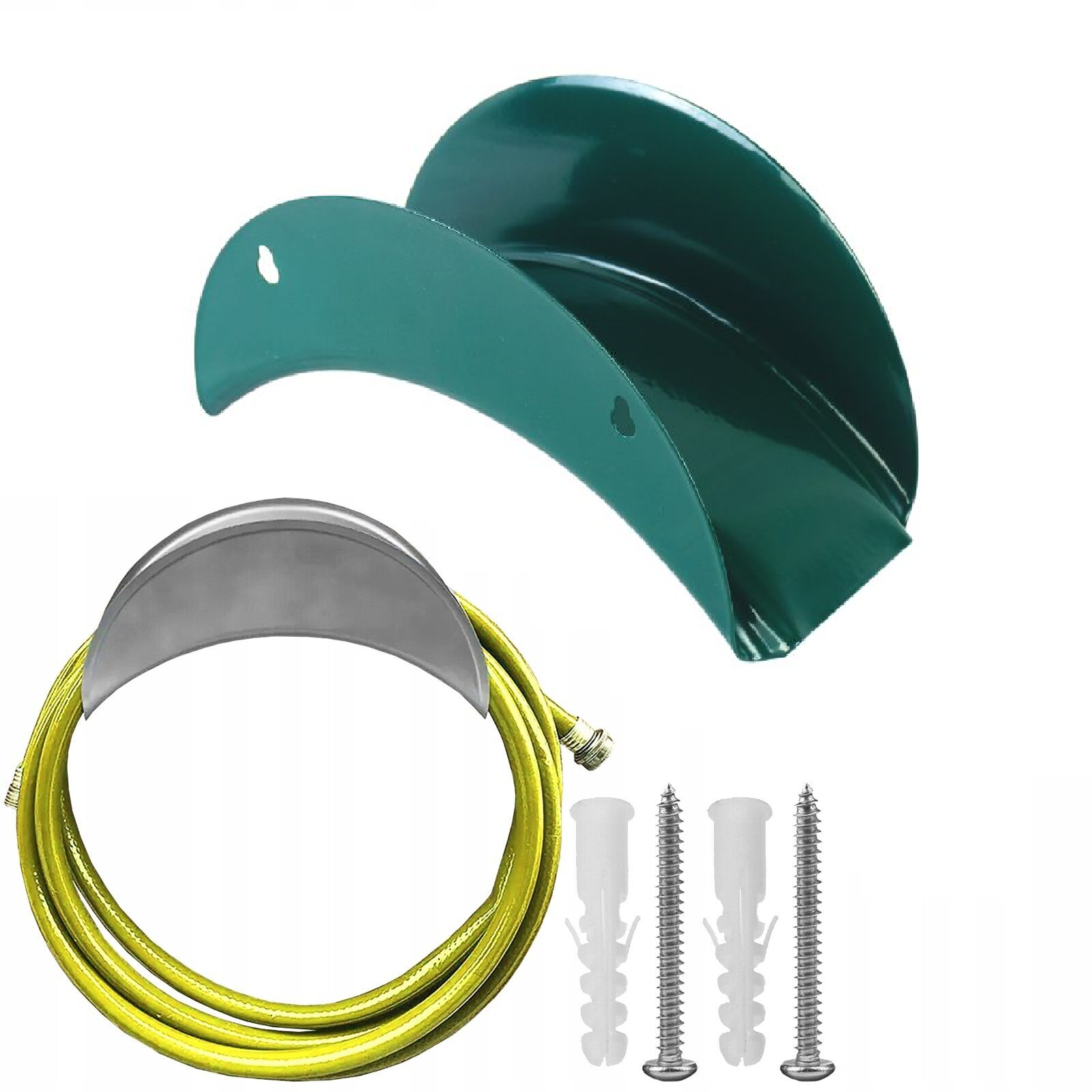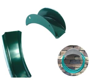Made from galvanised metal with a painted finish, the hanger is designed for outdoor use and everyday gardening tasks. The open cradle shape makes it easy to lift the hose on and off without snagging, while the robust construction offers reliable support once fixed to a wall or fence.