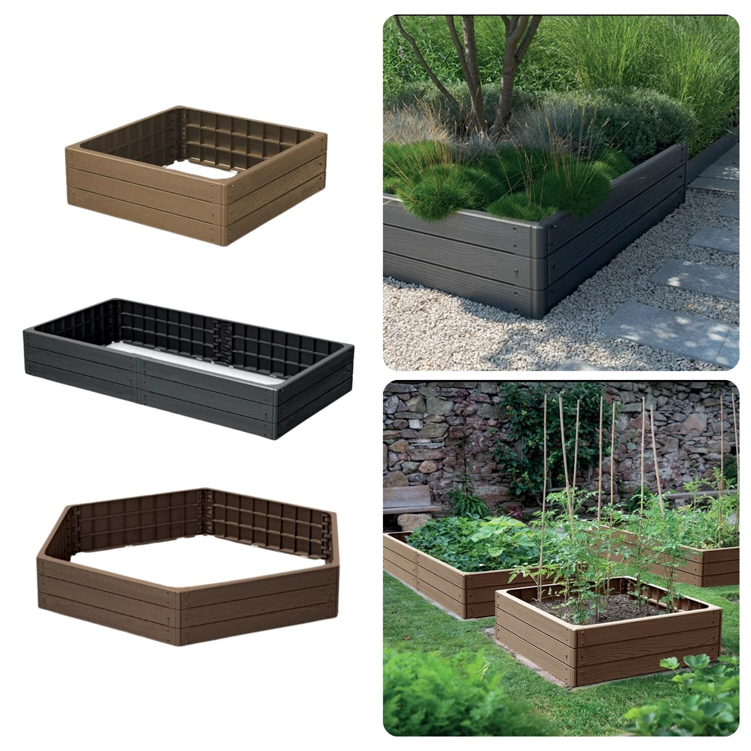 Made from durable, weather-resistant plastic with a natural wood-effect finish, the panels are designed to cope with outdoor conditions, including UV exposure and temperature changes. The modular construction allows you to build a shape that suits your space, whether you want a compact bed for herbs or a larger area for vegetables.