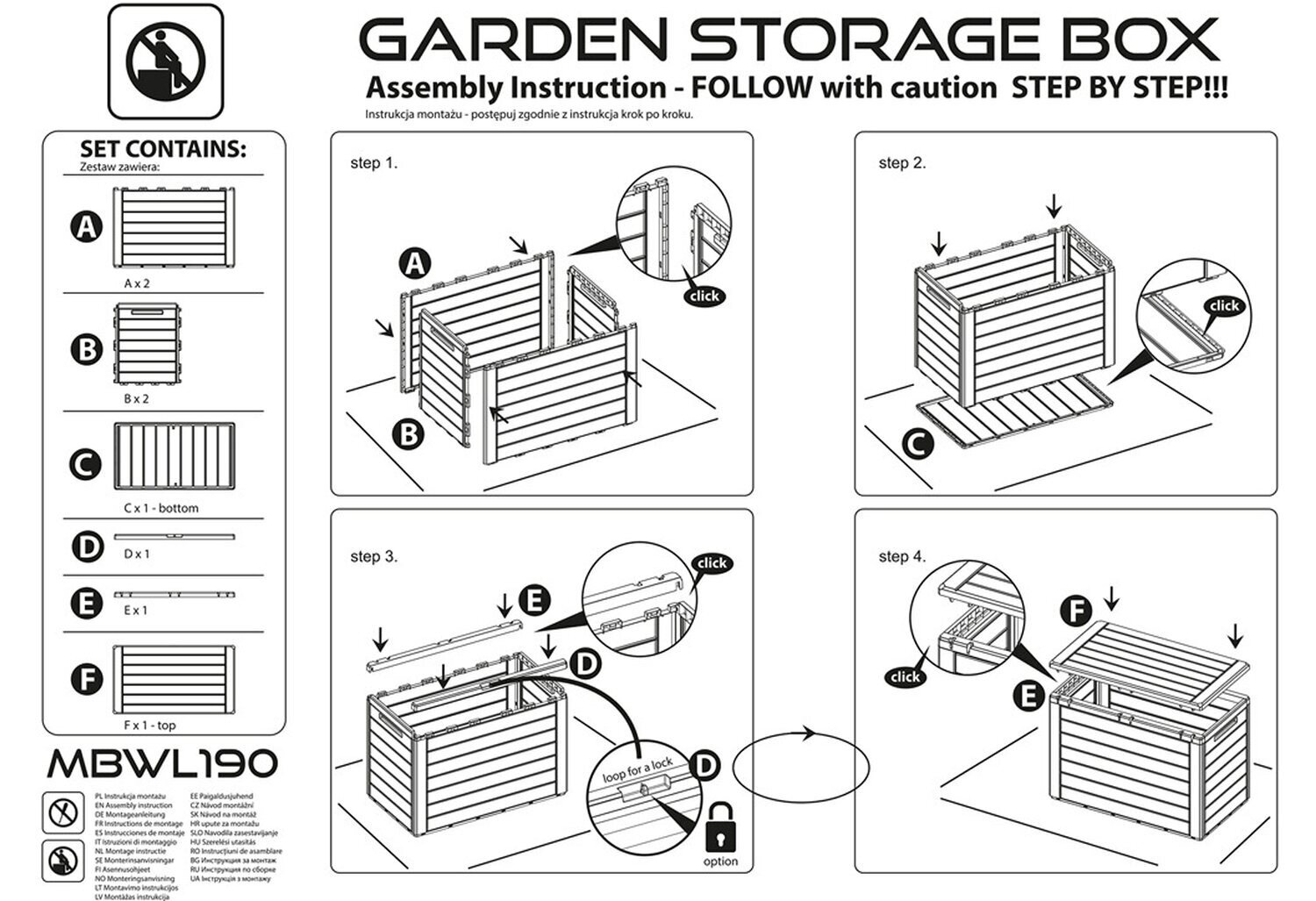 Assembly is straightforward, so you can get it set up quickly. For added peace of mind, the lid can be used with a padlock (padlock not included) to deter casual access in shared spaces such as balconies, communal gardens and holiday lets.