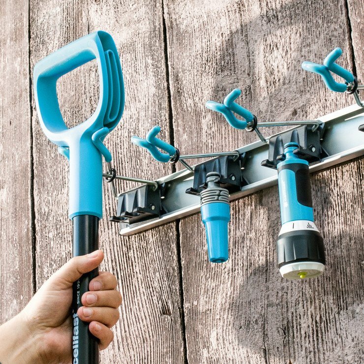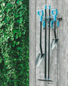 The rack is built around a durable aluminium body designed to resist corrosion in everyday indoor-outdoor environments. Self-locking holders grip handles securely, and the positions can be adjusted along the rail so you can space tools out to suit your collection. Soft plastic ends help protect tool handles while they’re stored.