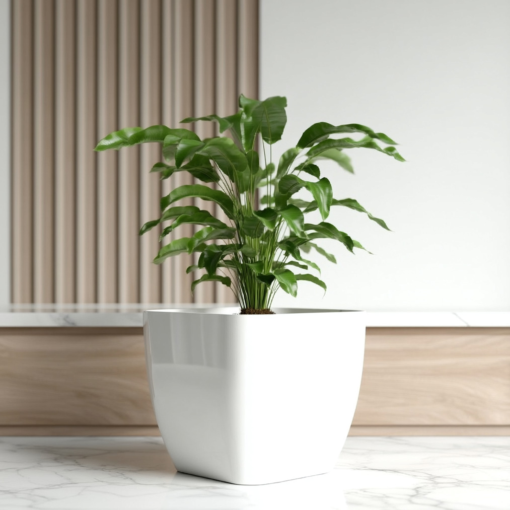 A sleek square plant pot with a glossy finish for a modern look indoors or outdoors. Lightweight and easy to wipe clean, it suits everything from succulents to herbs. With no drainage holes, it’s ideal for keeping indoor surfaces tidy.