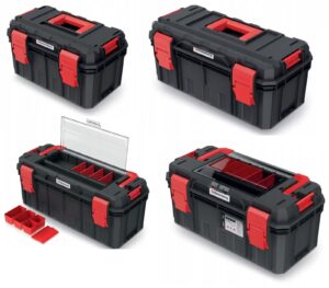 The tough polymer body is built for everyday use, with durable ABS latches and robust metal hinges. Selected models include a clear polycarbonate organiser lid to keep small parts visible and separated, while the sealed design helps protect contents from dust and splashes.