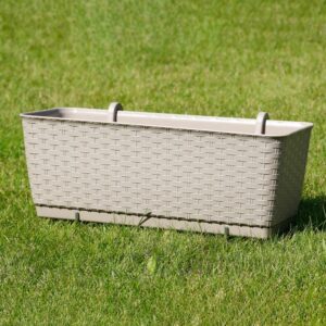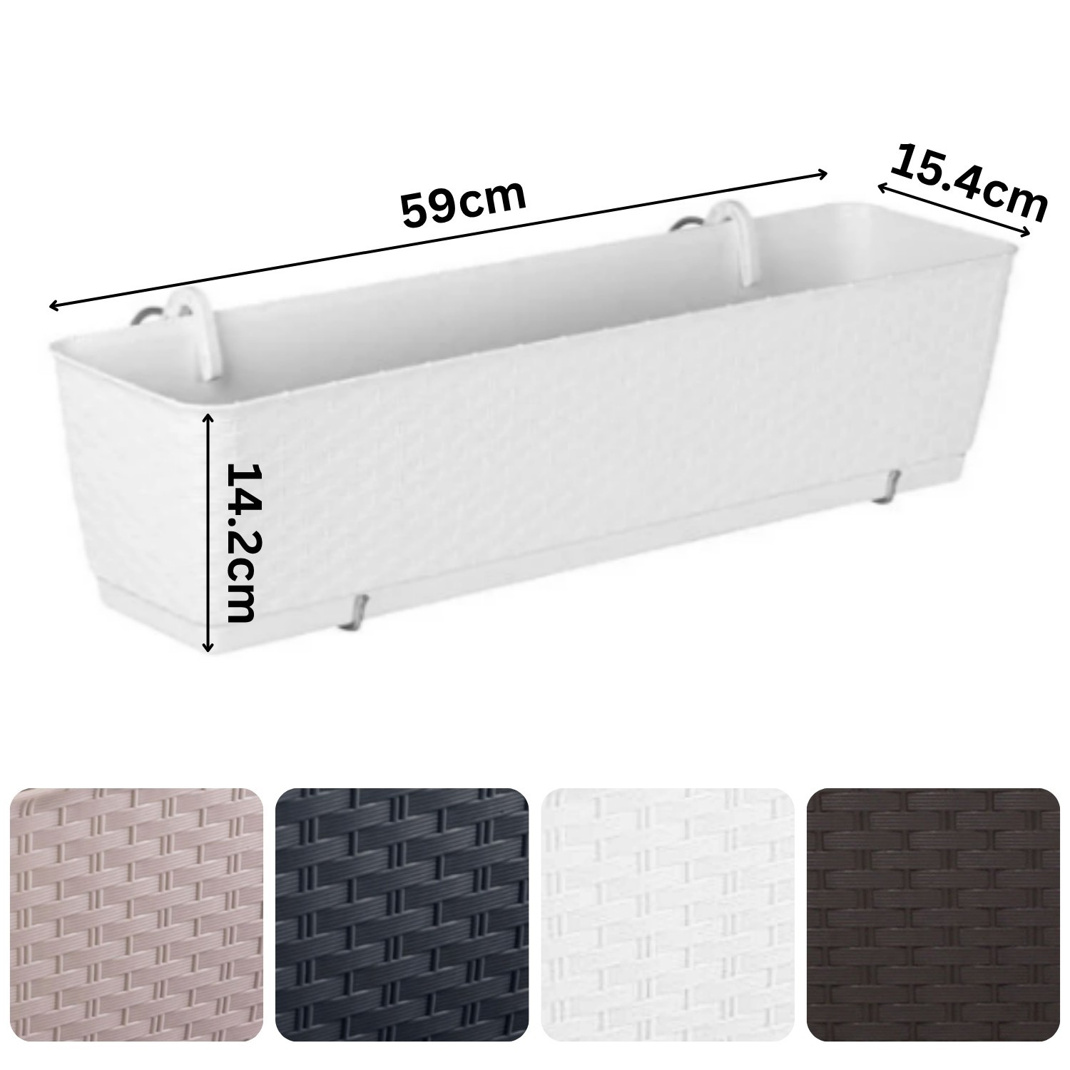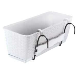 Made from durable, weather-resistant plastic with a woven-look finish, it’s designed for year-round use indoors or outdoors. The planter can be used as a freestanding trough or mounted using the included metal hooks, giving you flexible placement without fuss.