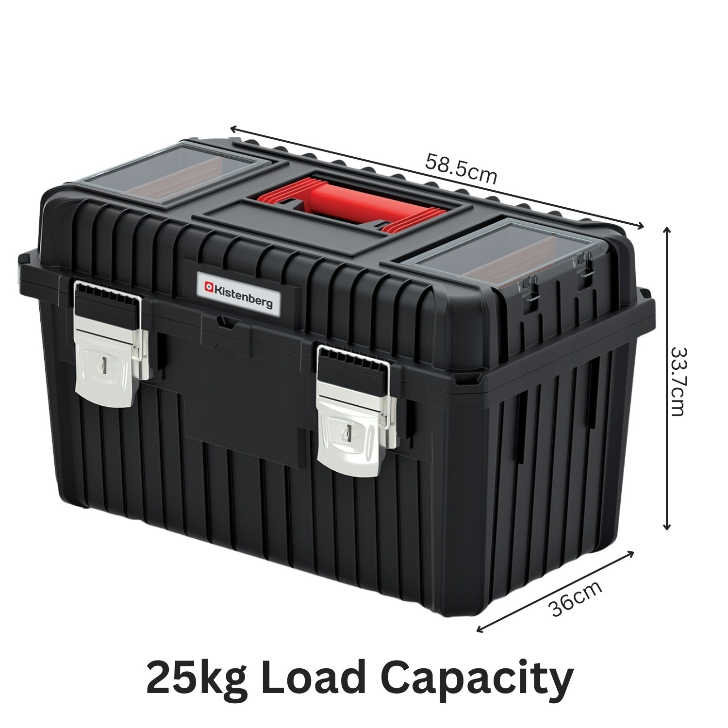 Rugged tool box storage case designed to keep tools protected and organised on the job or in the workshop. A sealed design helps resist dust and water, while built-in organisers and an internal tray keep small parts and essentials easy to find.
