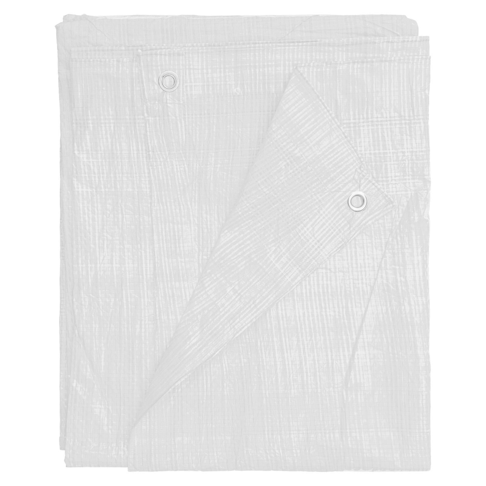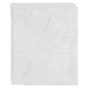 Lightweight white waterproof tarpaulin for quick, reliable cover indoors or outdoors. Ideal as a ground sheet for decorating and DIY, or for protecting tools, furniture and vehicle interiors during transport.