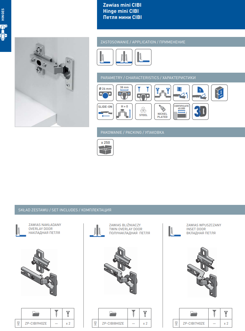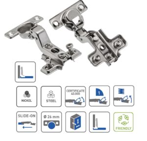 Ideal for replacing worn hinges or for new cabinet builds, especially where a smaller 26mm hinge cup is required. Suitable for many compact doors and furniture fronts where space is limited.