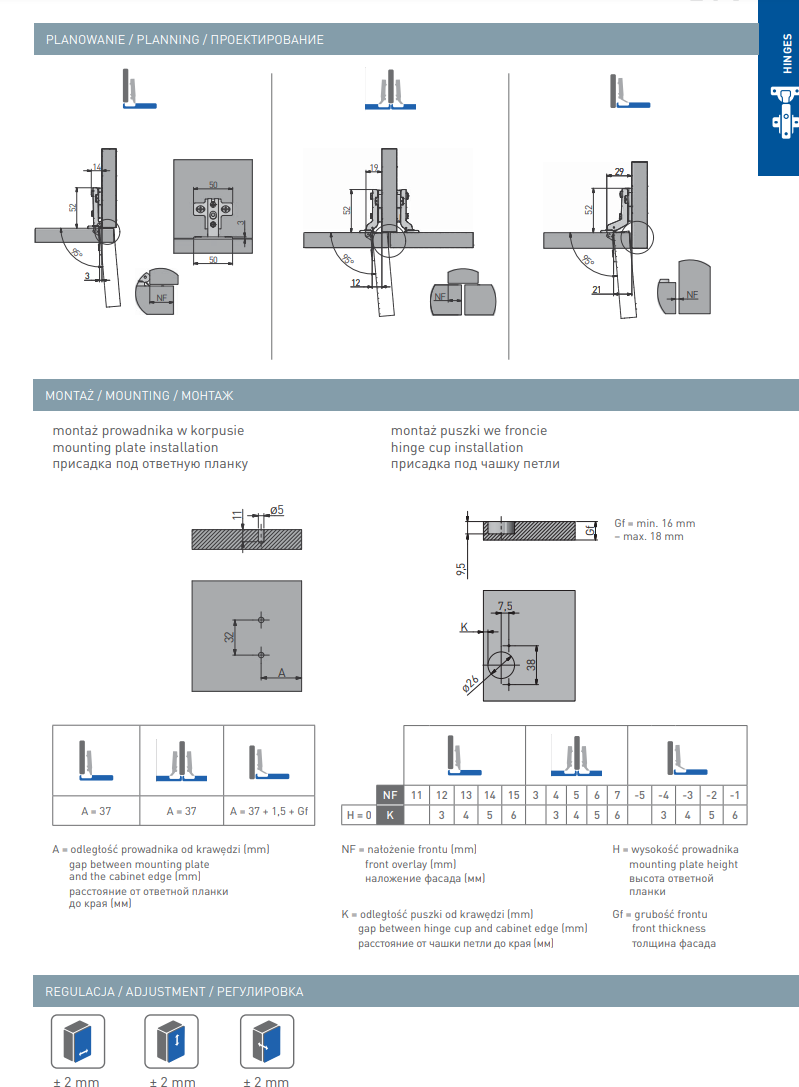 Made from steel with a nickel finish, the hinge is built for everyday use and long-lasting performance. The integrated spring closing mechanism helps pull the door shut, and the hinge offers three-way adjustment to fine-tune door position after fitting.