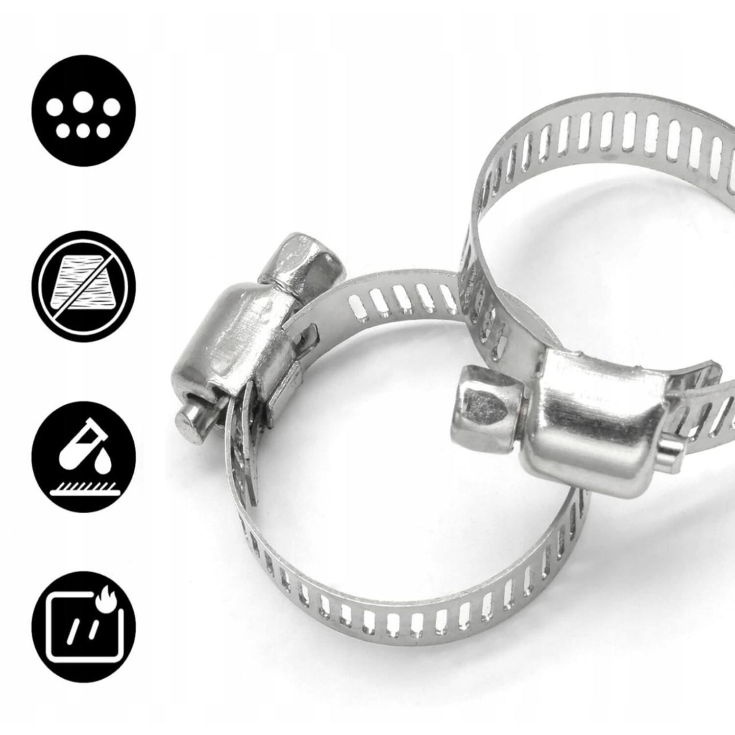Each clip is made from galvanised steel to help resist rust in everyday use. The worm drive design provides controlled tightening for a strong grip, and the screw head is suitable for common drivers, making installation and adjustment straightforward.