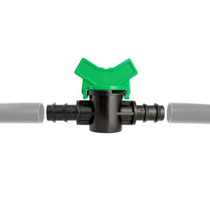 This in-line irrigation valve gives you simple, reliable control over water flow in 13mm (1/2″) irrigation pipe. Use it to isolate sections, regulate flow to different areas, or quickly shut off a line for maintenance, helping reduce wasted water and improve overall watering efficiency.
