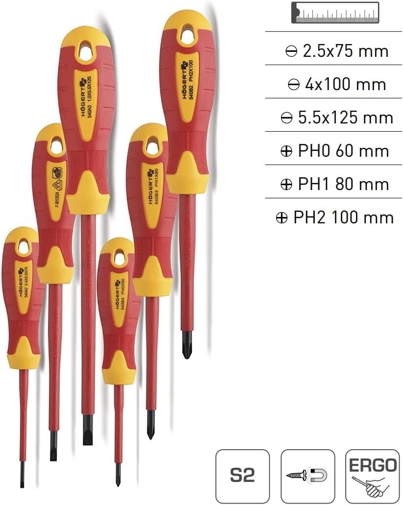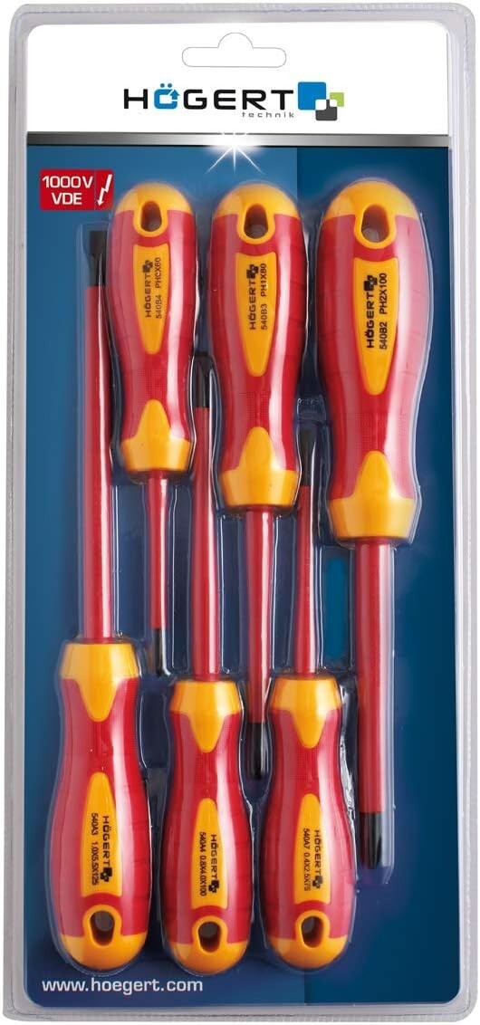 This 6-piece insulated screwdriver set is designed for electricians and competent DIYers who need reliable hand tools for electrical installation and maintenance. VDE certification helps provide added reassurance when working on live equipment, while magnetic tips improve control when starting and removing screws.