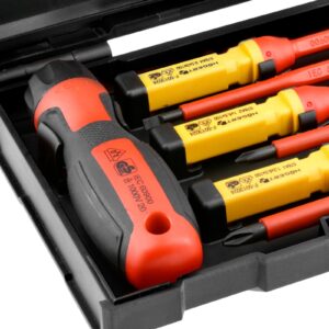 Use this set for household electrical repairs, light fitting changes, and professional site work where insulated hand tools are required. Always follow safe working practices and confirm isolation before carrying out any electrical task.