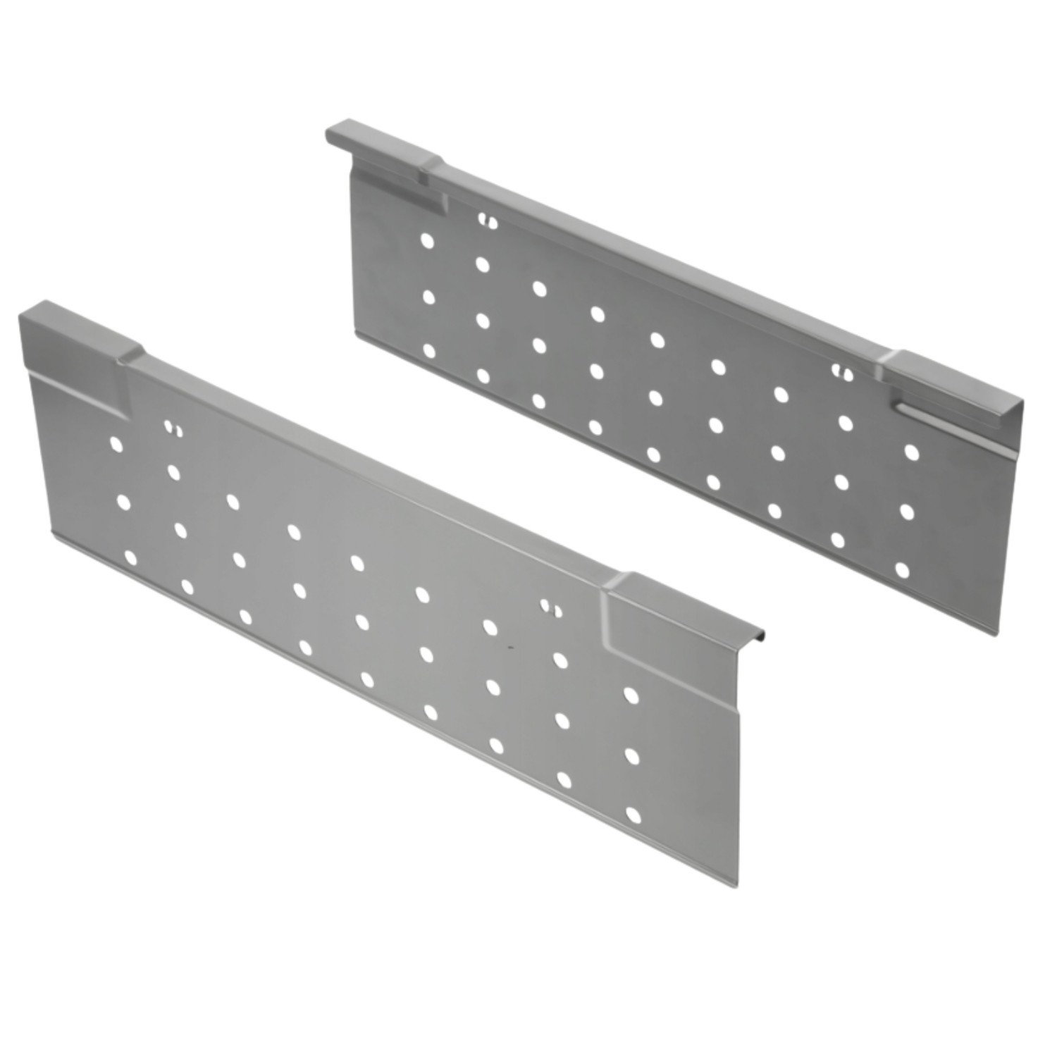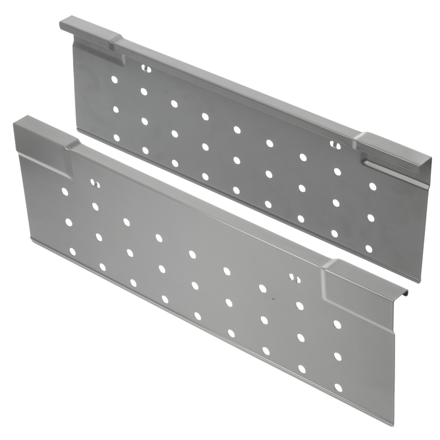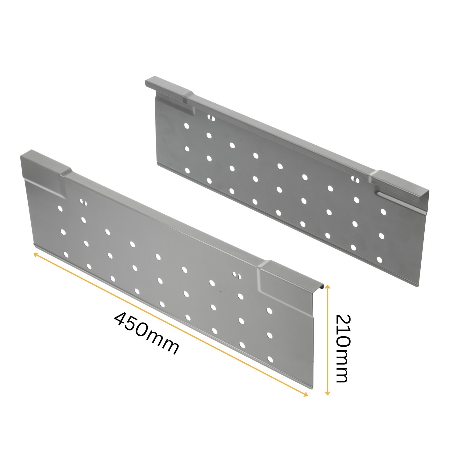 Perforated steel side panels designed to upgrade Modern Box Square high drawers, helping you use the full drawer height neatly. Supplied as a left and right pair for a clean, stable finish in kitchens, wardrobes and workshop cabinets.