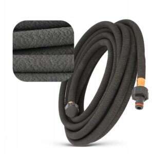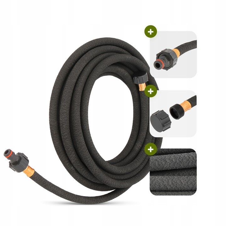 Landscape-grade porous soaker hose for gentle, even watering along the length, helping reduce water waste. Flexible recycled rubber construction can be laid on the surface or buried under mulch for discreet irrigation. Compatible with standard quick connectors via suitable adapters.