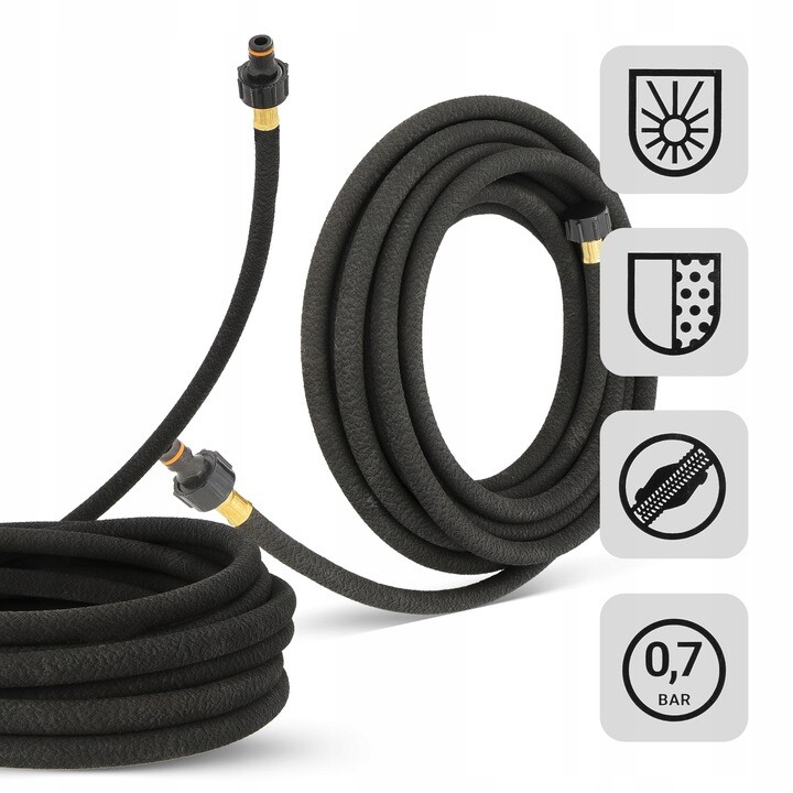 Made from thick-walled recycled rubber, the hose is flexible and resistant for use in borders, raised beds and planted rows. It can be cut to the length you need, or extended using suitable connectors, making it easy to tailor your watering layout.