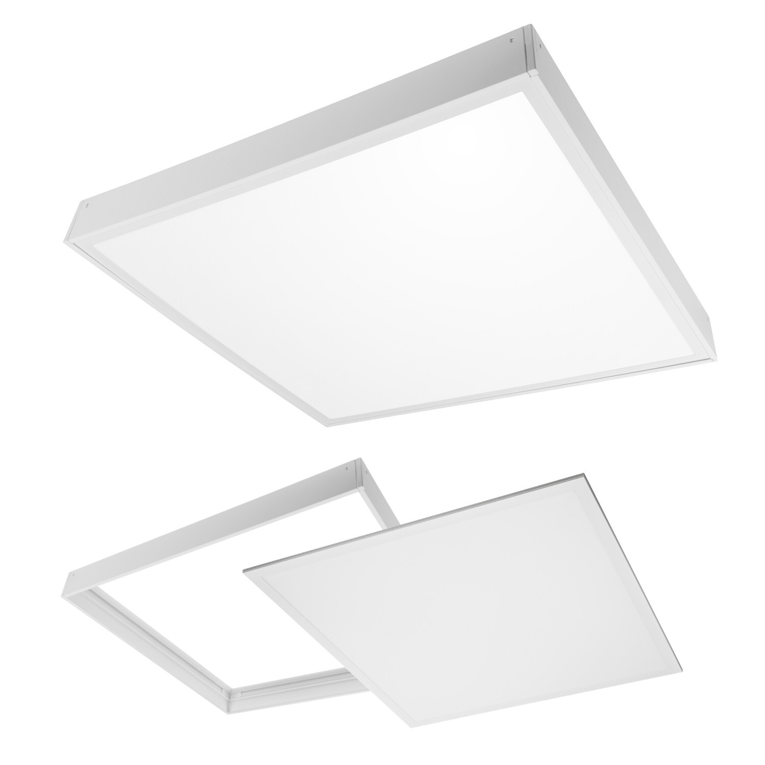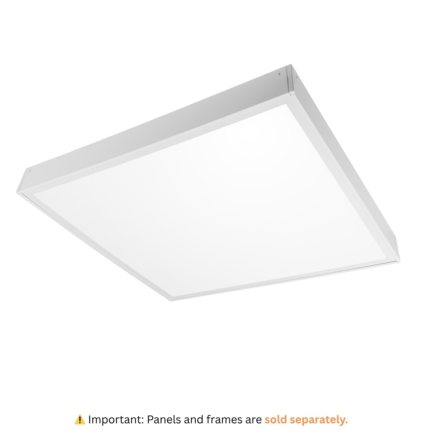 Slim 600×600 LED panel light or matching surface-mount frame for bright, even indoor lighting. Choose the panel or the frame (sold separately) and select a single unit or multipack to suit your installation.