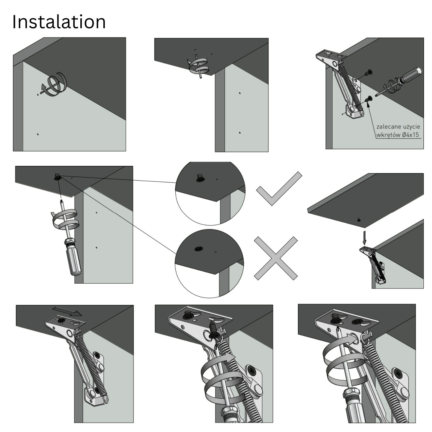 This spring-loaded lift-up hinge support set is designed to help upper cabinet doors, lids and flap fronts open smoothly and stay securely raised. It improves access to cupboard contents while giving a neat, controlled lifting action that feels more premium in everyday use.