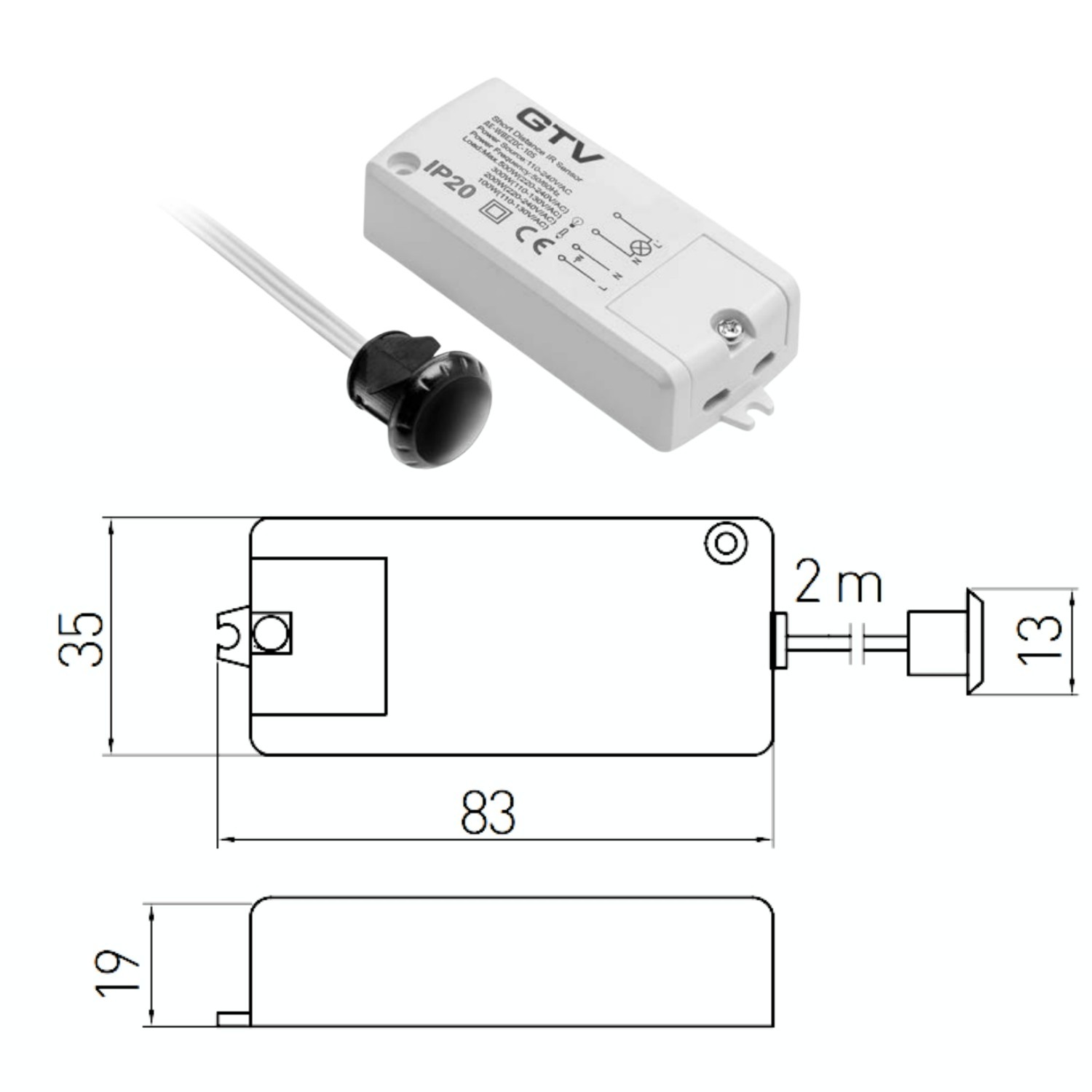 Built for indoor installations, this bipolar switch uses an infrared sensor to provide reliable, repeatable activation in everyday use. The housing is made from EN-compliant plastic and is intended for standard interior environments.
