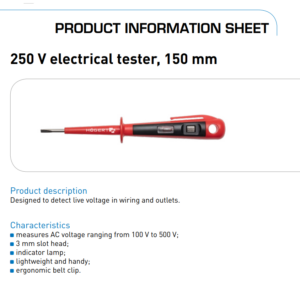 Ideal for basic fault-finding and quick checks on sockets, switches, extension leads and lighting circuits, it’s a practical addition to any DIY kit or electrician’s bag. Use it to confirm the presence of mains voltage during troubleshooting and before isolating circuits.