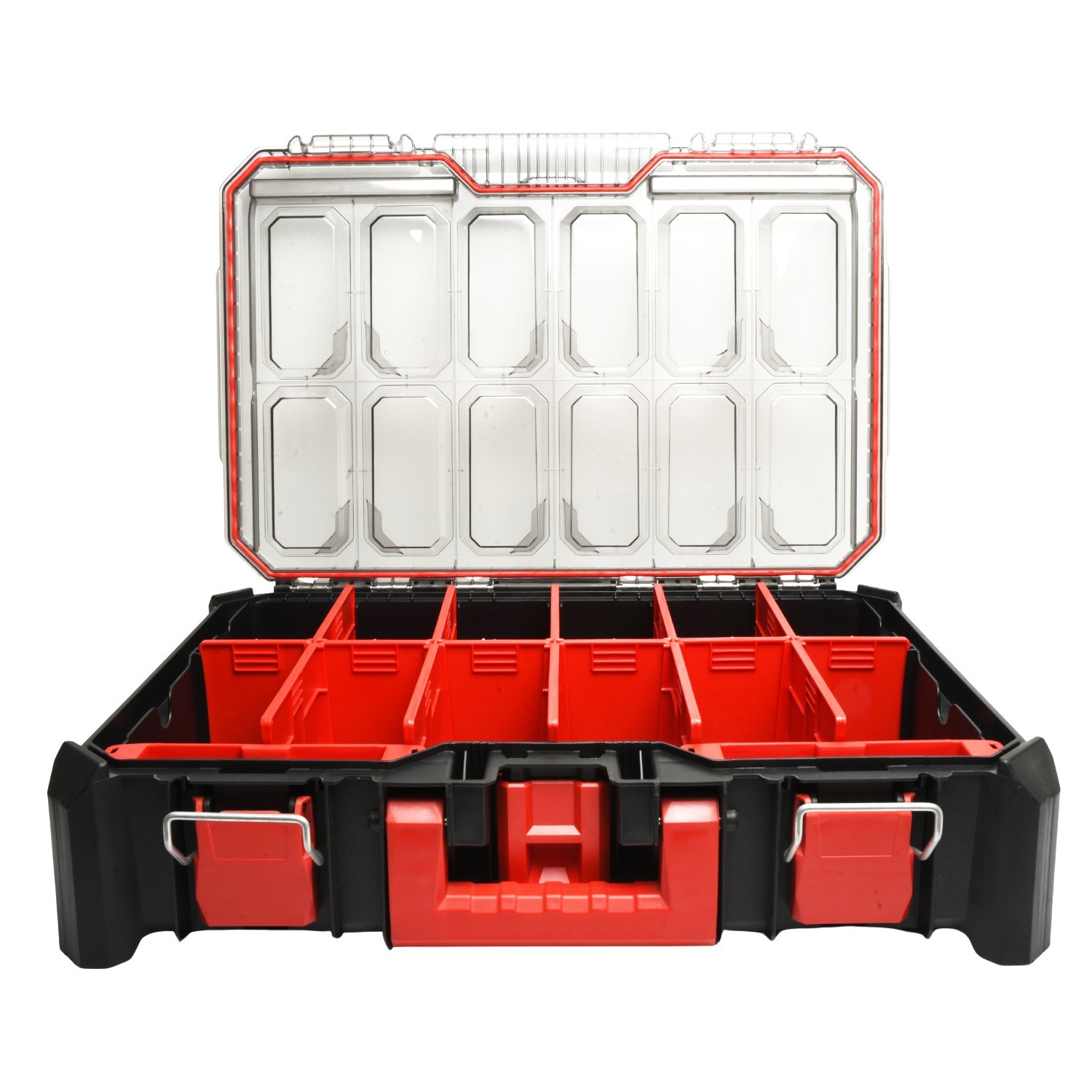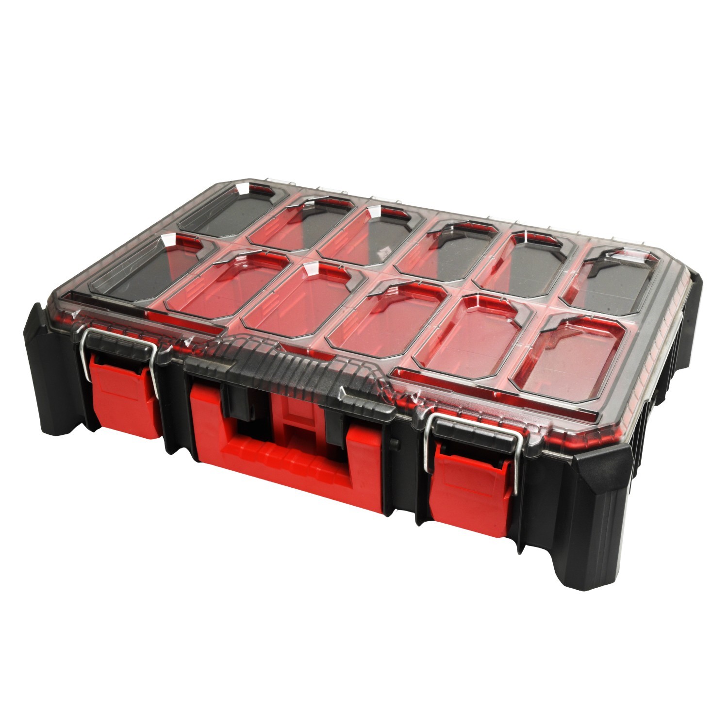 Built from a high-strength polymer body with metal-reinforced hinges and secure latches, it’s made for regular use in busy environments. A transparent polycarbonate lid improves visibility, so you can check what’s inside without opening the case.