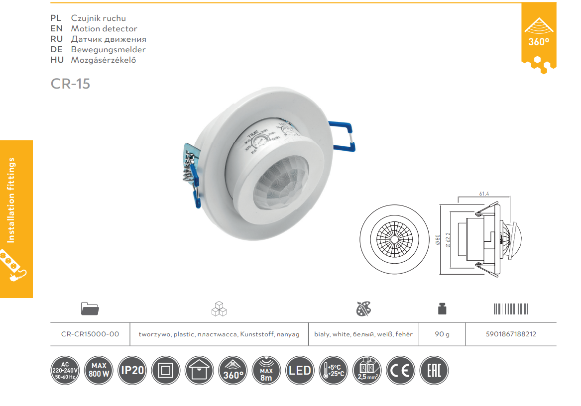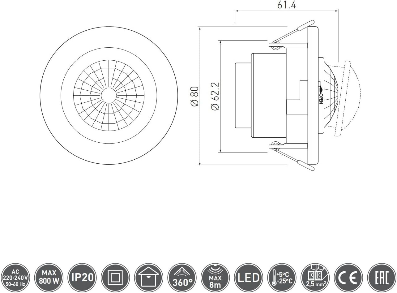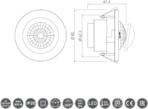 This recessed 360° PIR ceiling occupancy sensor provides convenient, automatic lighting control by detecting movement and switching a connected light on and off for you. It’s designed to improve day-to-day comfort while helping reduce unnecessary energy use in busy areas around the home or workplace.