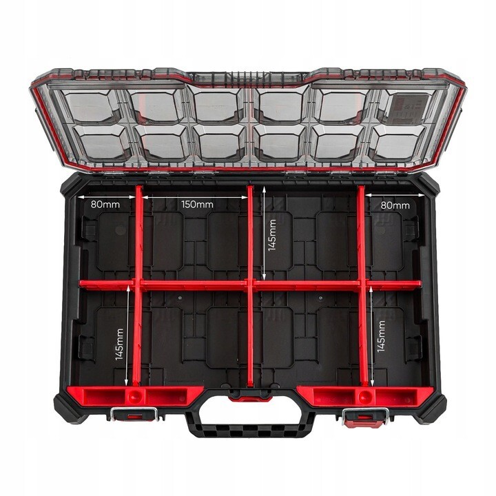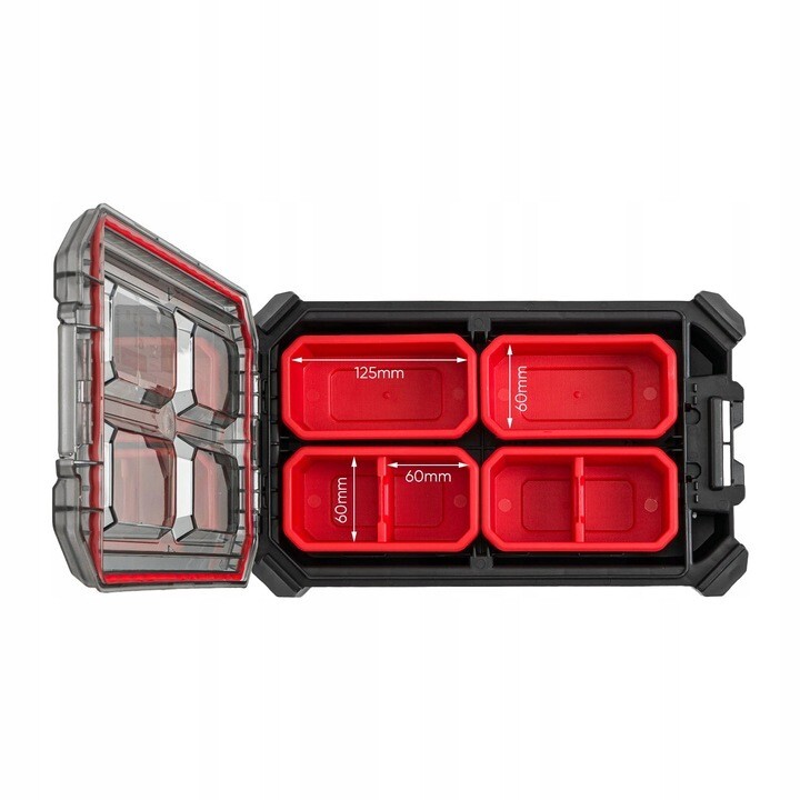 Each organiser is made from a tough polymer blend for durability, with transparent polycarbonate lids so you can see contents at a glance. Strong ribbing helps resist dents and warping, while cover seals provide dustproof, water-resistant protection for stored items.