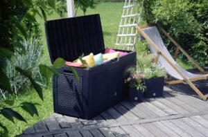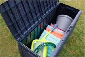 Ideal for storing garden cushions, outdoor toys, small tools, accessories and seasonal items, it helps reduce clutter and keeps frequently used items organised. Its rectangular shape makes it easy to place against a wall or tuck into a corner without wasting space.