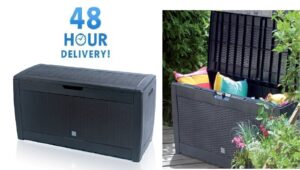 This 310L garden storage box is a practical way to keep outdoor spaces neat, protecting everyday essentials from the elements while keeping them close to hand. With its smart rattan-effect finish, it blends in neatly on patios, balconies and beside garden furniture.