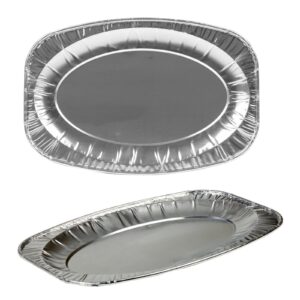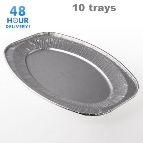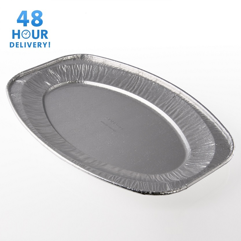 Serve hot or cold food at parties, buffets and events with these oval aluminium foil platters. Disposable for quick clean-up, yet sturdy enough to rinse and reuse. Suitable for oven and freezer use for easy prep and storage.