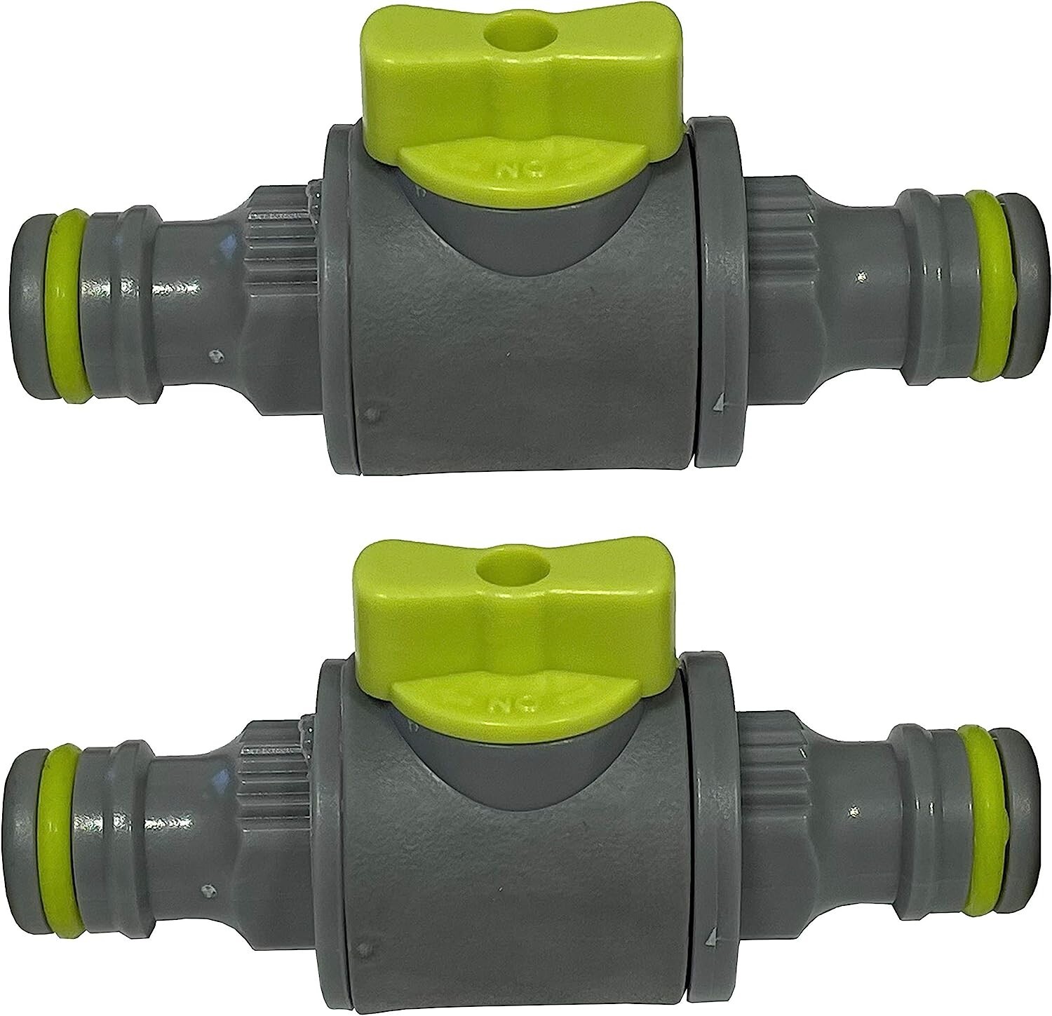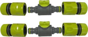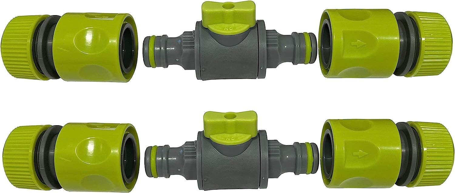 Control water flow instantly without walking back to the tap. These quick-release in-line shut-off valves fit between hose connectors for easy on/off control while watering or using micro irrigation systems. Supplied as a 2-pack.
