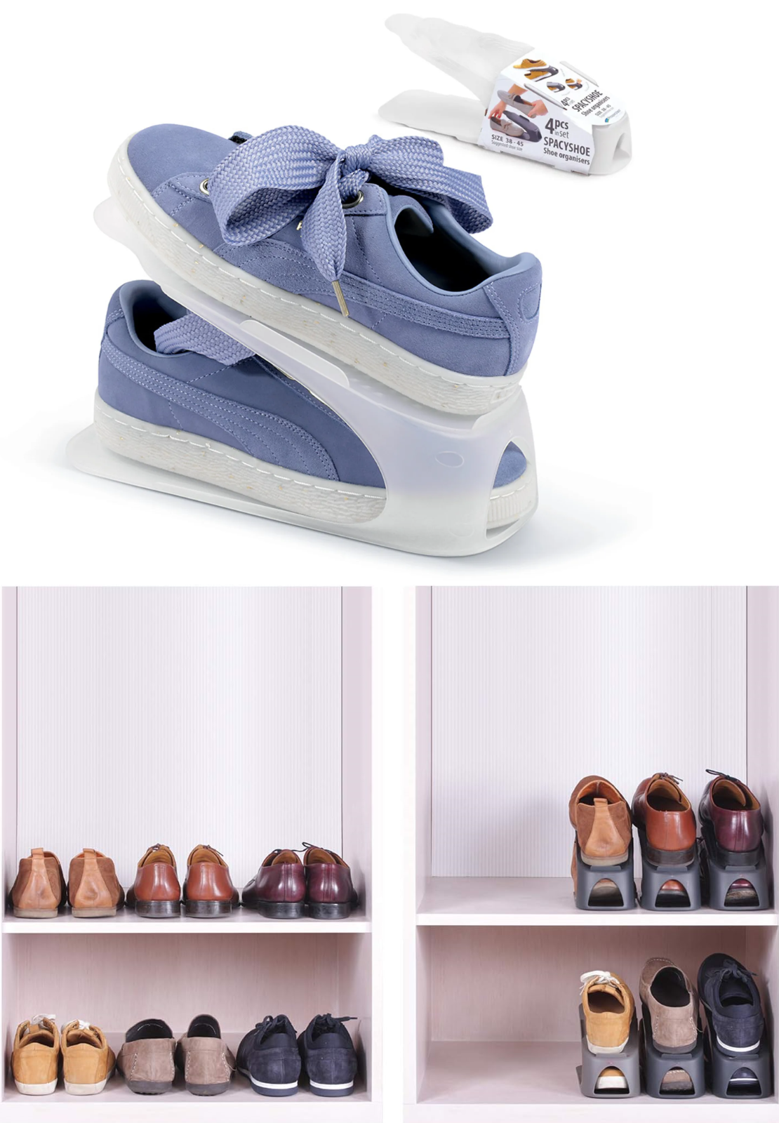 Tidy up wardrobes, cupboards and shoe cabinets with these space-saving shoe organiser slots. Each slot lets you stack one shoe above another, helping you reduce clutter and make better use of shelf space while keeping pairs easy to find.