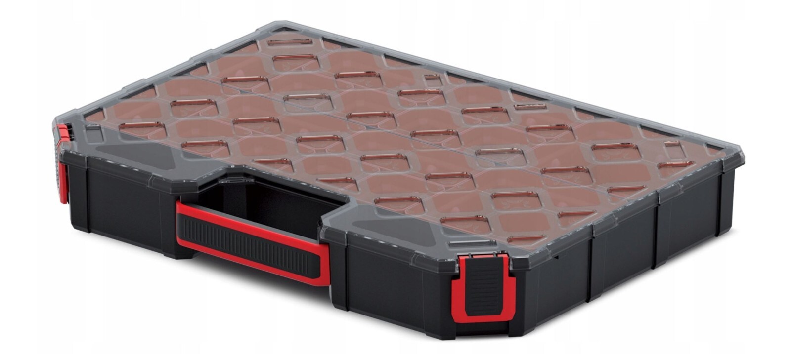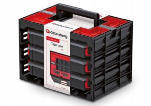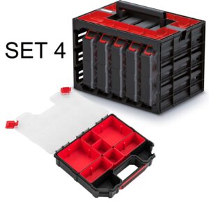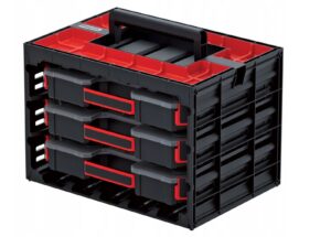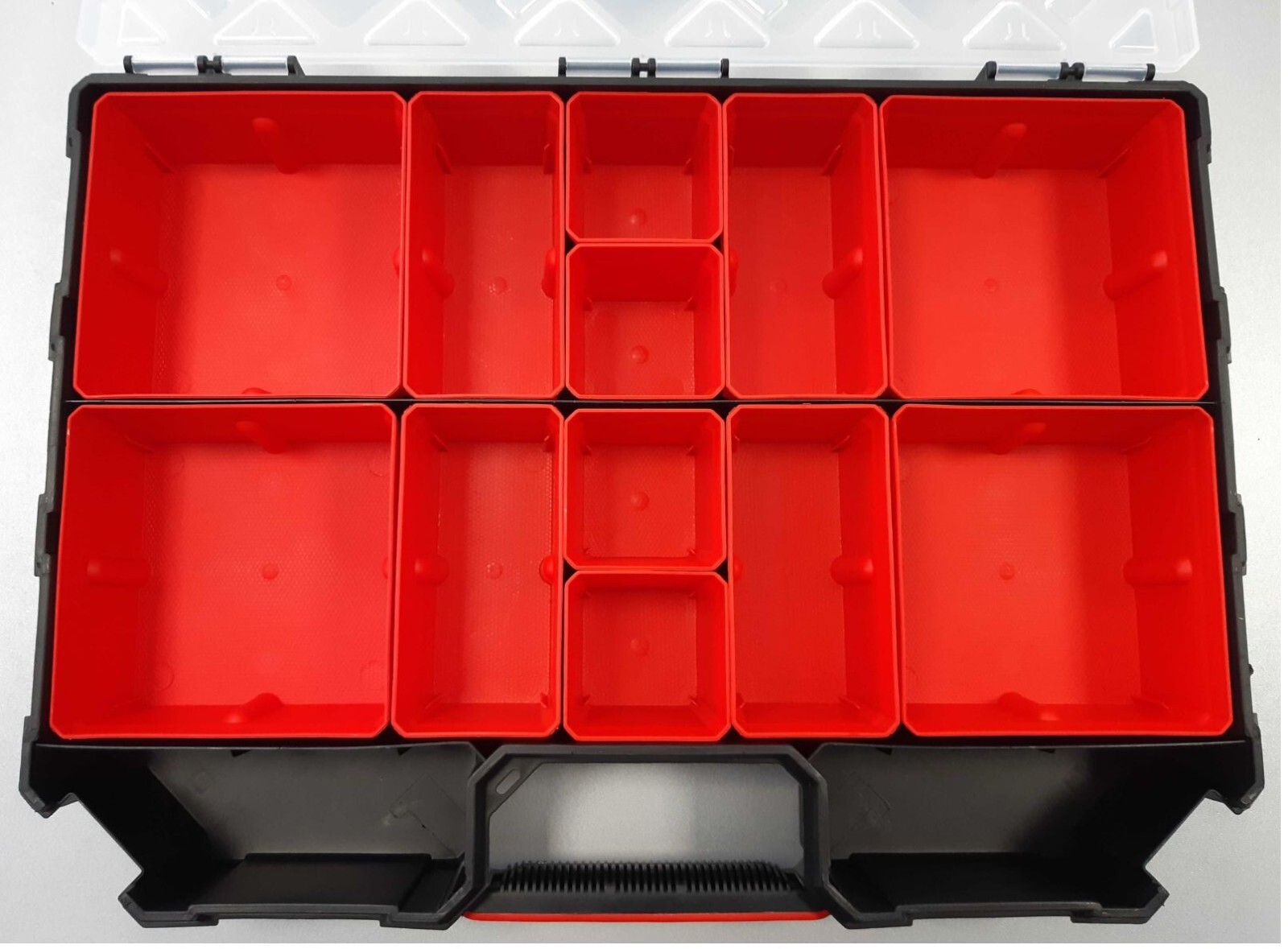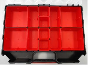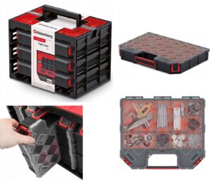 Built around a tough, load-bearing polymer-blend body, the case is made for regular use and handling. Inside, the organiser boxes include removable cups/dividers so you can customise the layout for different fasteners and components, while the clear lid helps you check contents at a glance.