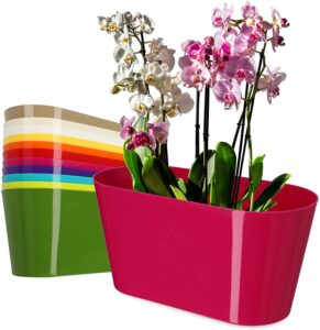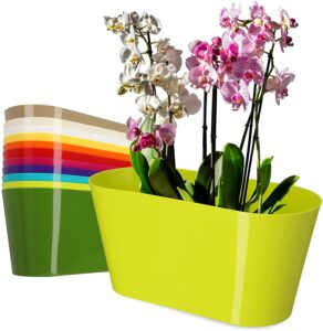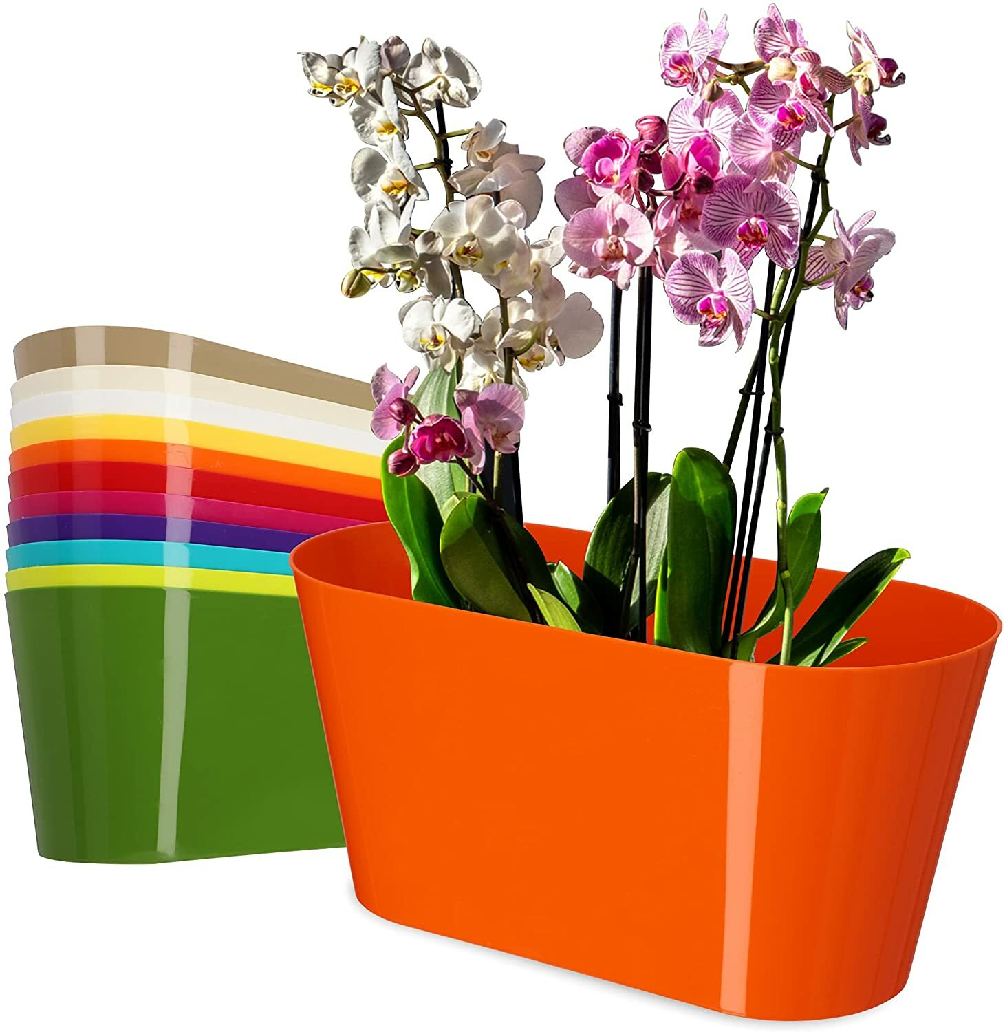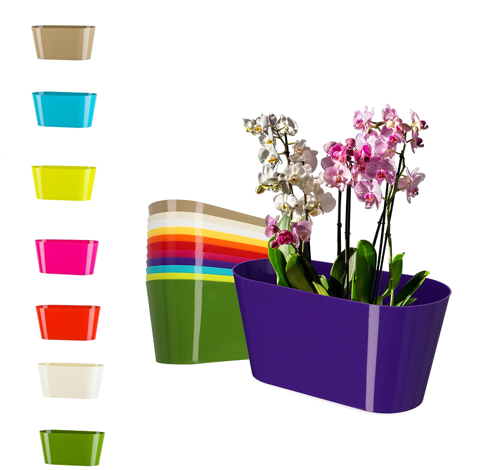 A gloss-finish oval plant pot with matching saucer, ideal for keeping surfaces clean while displaying houseplants. The wide shape offers good stability and suits a range of indoor or outdoor settings. Choose from multiple colours to complement your décor.