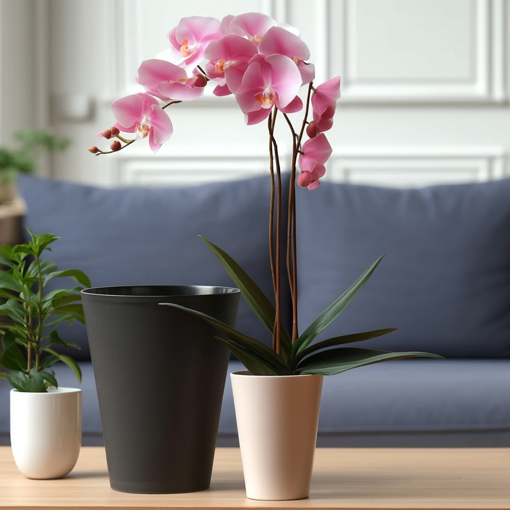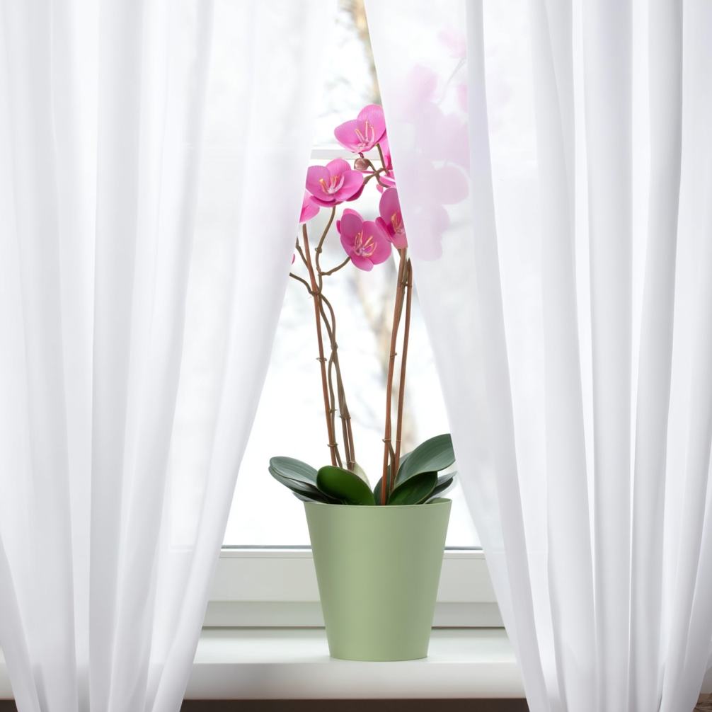 A modern matte-finish orchid pot cover that neatly hides nursery pots and lifts the look of your plants. Lightweight and easy to wipe clean, it’s ideal for orchids and other medium houseplants. Choose from a range of colours to suit your décor.