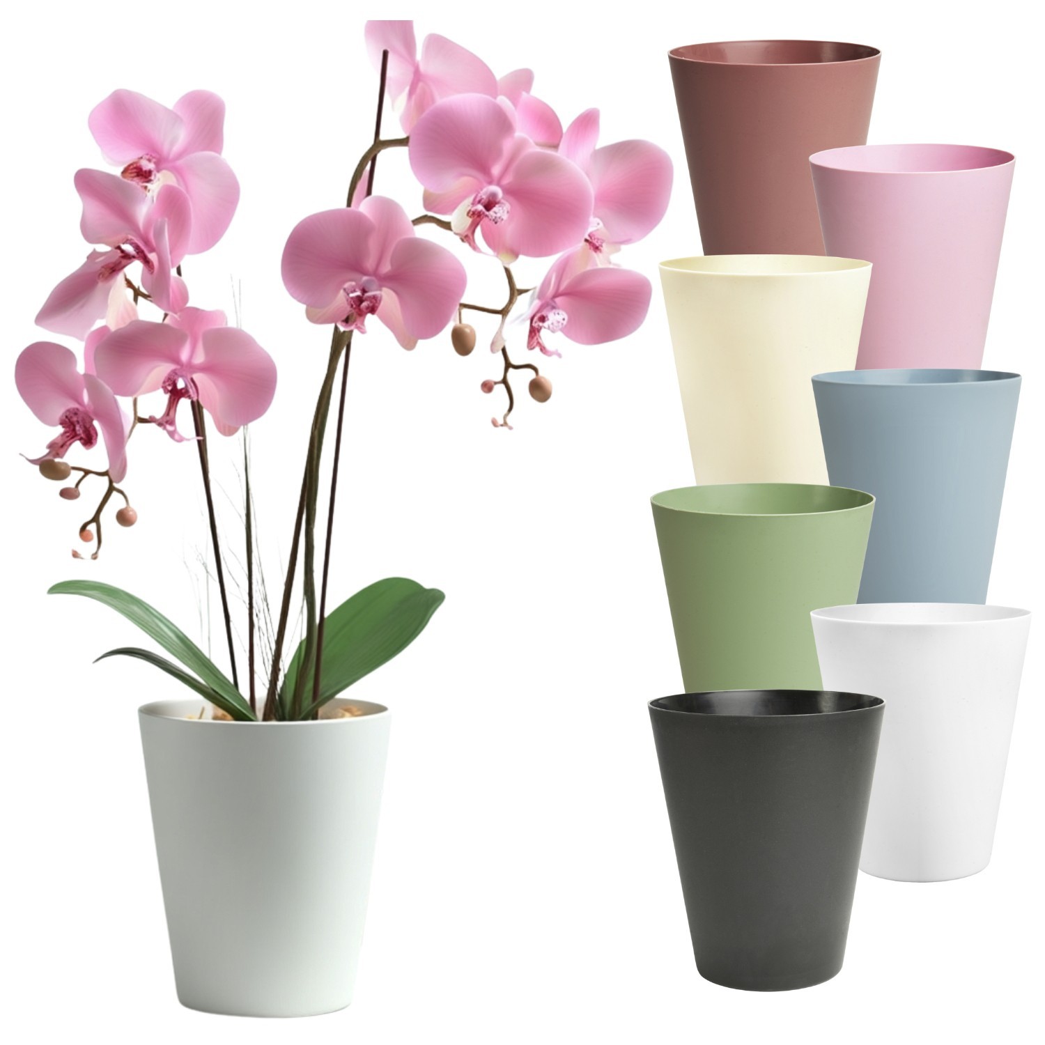 Orchid Pot Cover Matte Plastic Round 1.12L