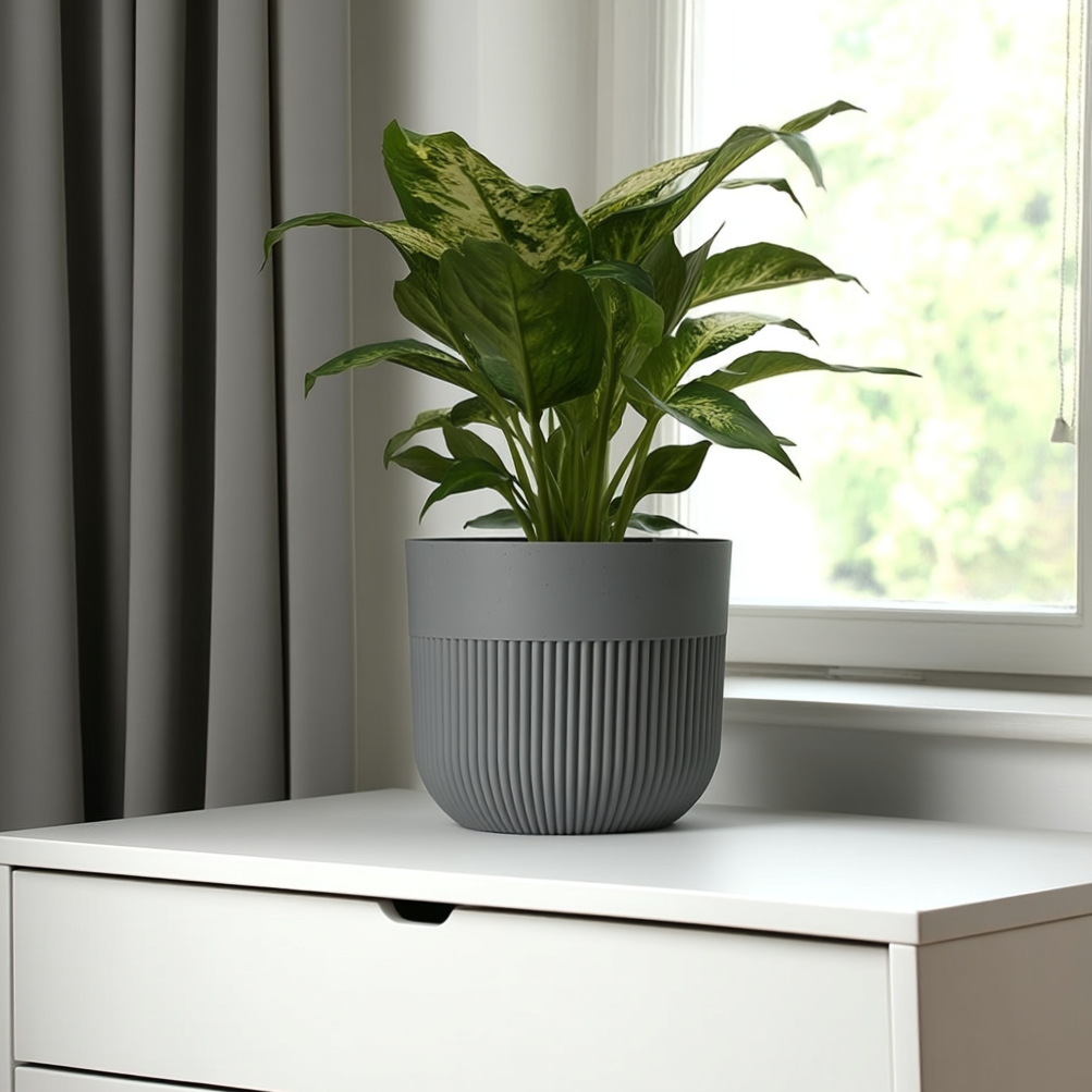 Made from durable plastic with a ribbed body and smooth upper rim, this planter is designed for everyday use and quick, fuss-free cleaning. It’s a practical choice for plant lovers who want a tidy, coordinated look without the weight of ceramic pots.