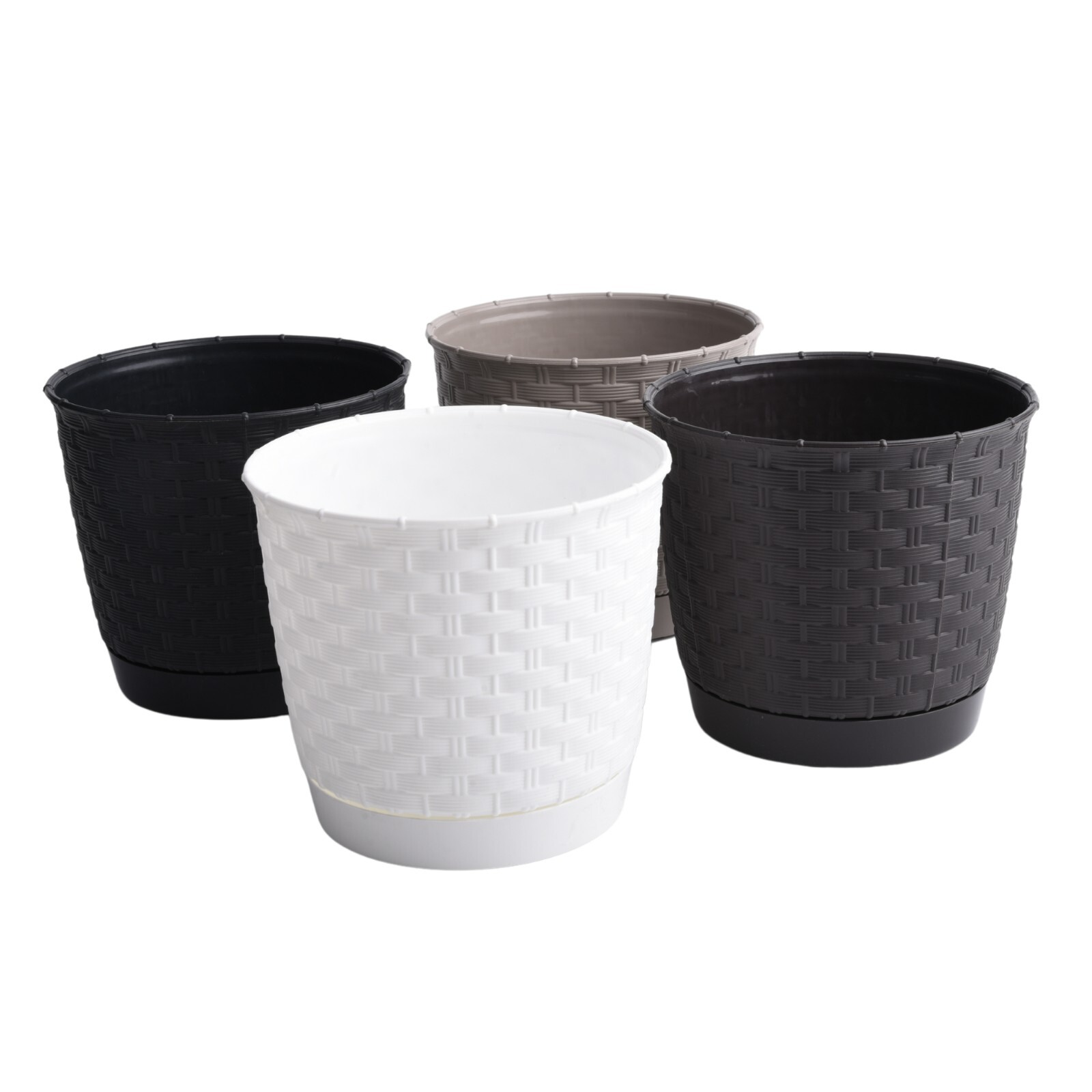 Made from durable plastic, the pot is simple to clean and built to handle outdoor conditions better than natural rattan. The wave-style finish creates a decorative, textured look that complements modern and classic planting schemes alike.