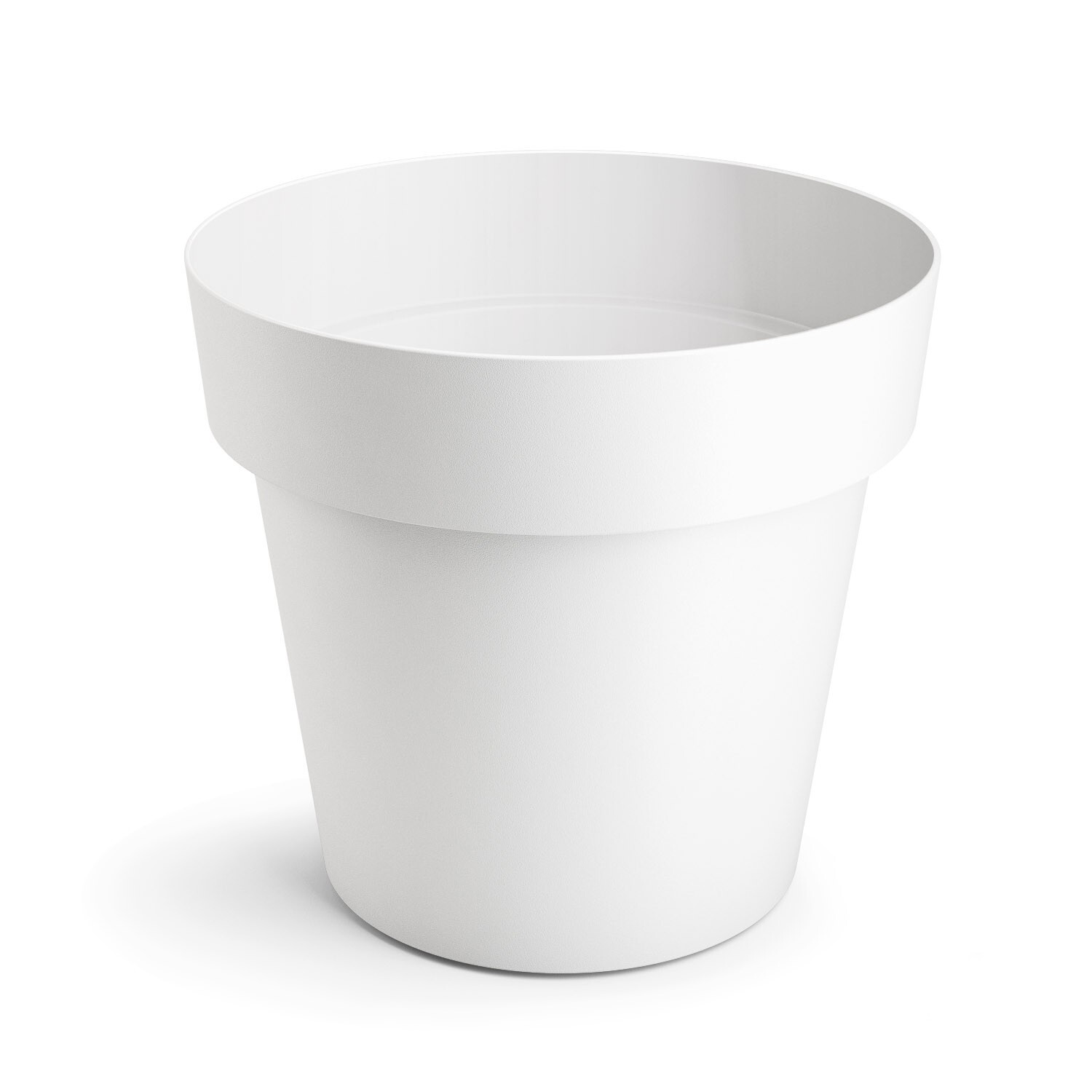 Classic round plant pots with a modern matt finish for a clean look in any room or patio. Made from durable plastic to resist everyday scuffs and scratches. Choose from a range of sizes and colours to suit your plants.