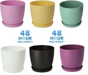 Refresh your home or patio with these modern matt plant pots supplied with a matching saucer tray. They’re designed to keep plants looking tidy while helping to catch excess water and protect shelves, windowsills and floors.